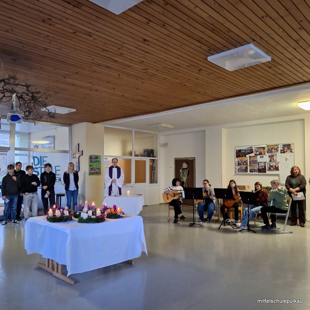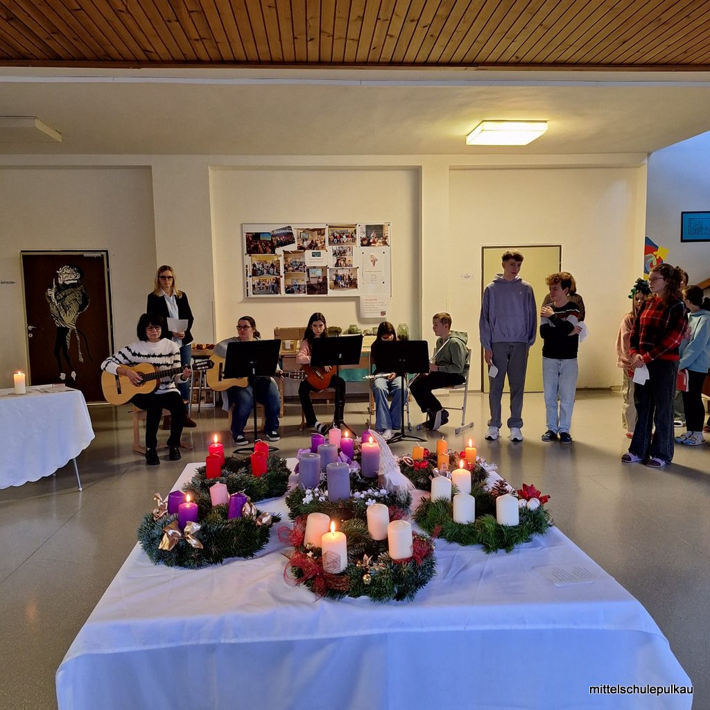 Am Montag fand die Segnung der Klassenadventkränze in unserer Aula statt. Mit guten Gedanken und den ersten vorweihnachtlichen Liedern. Frau Direktorin Ptacek bedankt sich auch noch herzlich bei den Schülerinnen, Schülern und dem Lehrkörper für die tatkräftige Unterstützung beim Christkindlmarkt.