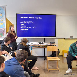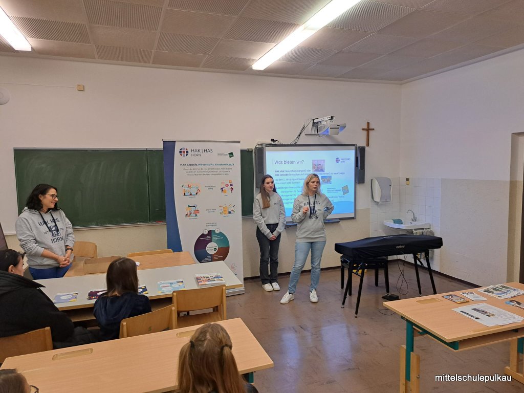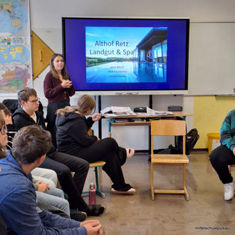 Workshop für die 4a und 4b, organisiert von der WKO, zum Thema Berufe in der Tourismusbranche. Interessante Einblicke gab es von einer Mitarbeiterin des Althof Retz.