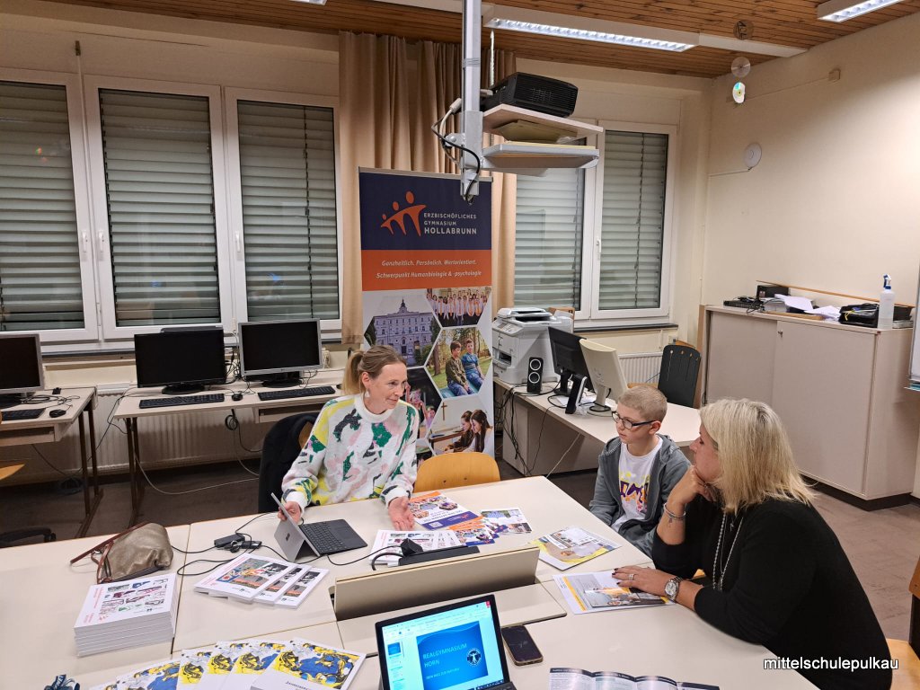 Beinahe 20 verschiedene Schulen kamen an unsere Schule und stellten sich vor. Die interessierten Kinder der 3. und 4. KLassen konnten sich mit ihren Eltern in den Klassenräumen über die unterschiedlichen Schulen informieren und fragen, wo die Schwerpunkte liegen. Besonders nett ist es, wenn ehemalige SchülerInnen ebenfalls über ihre neue Schule informieren.