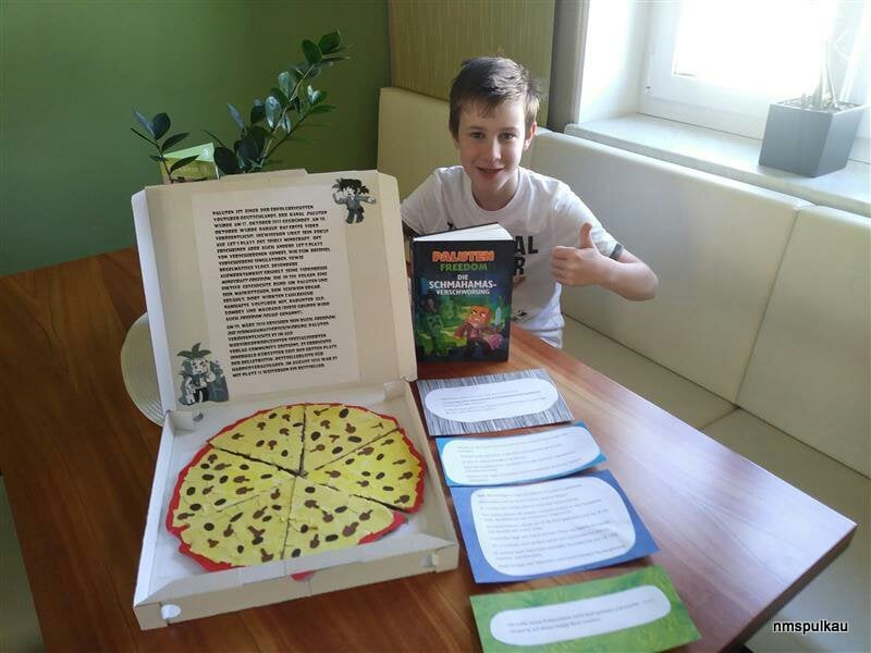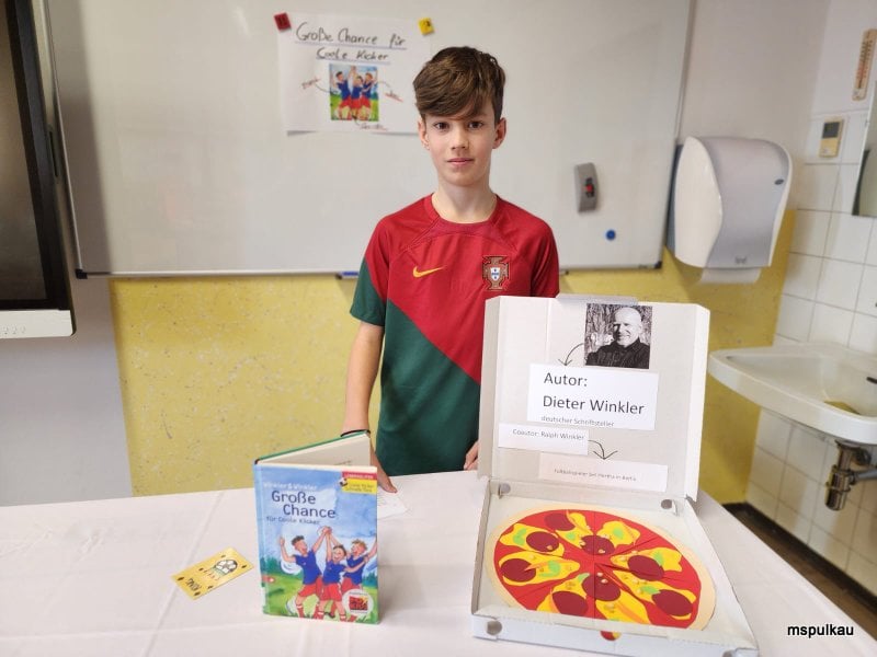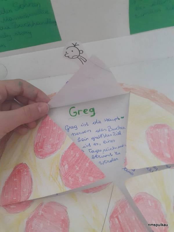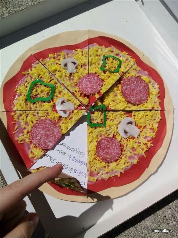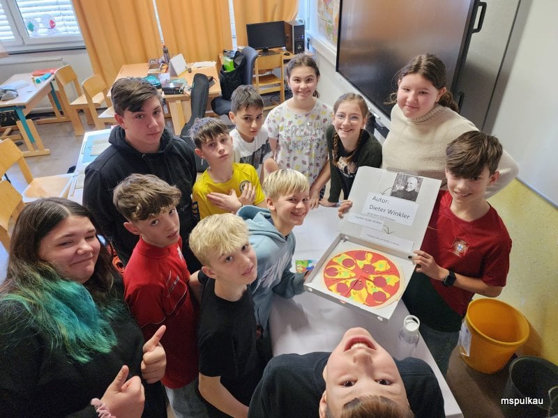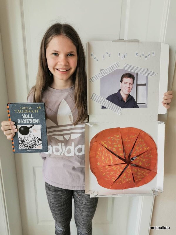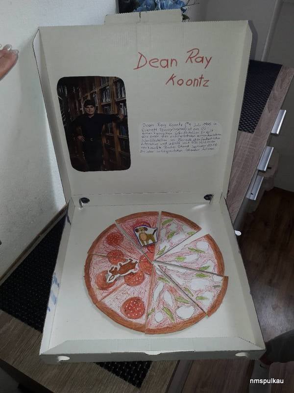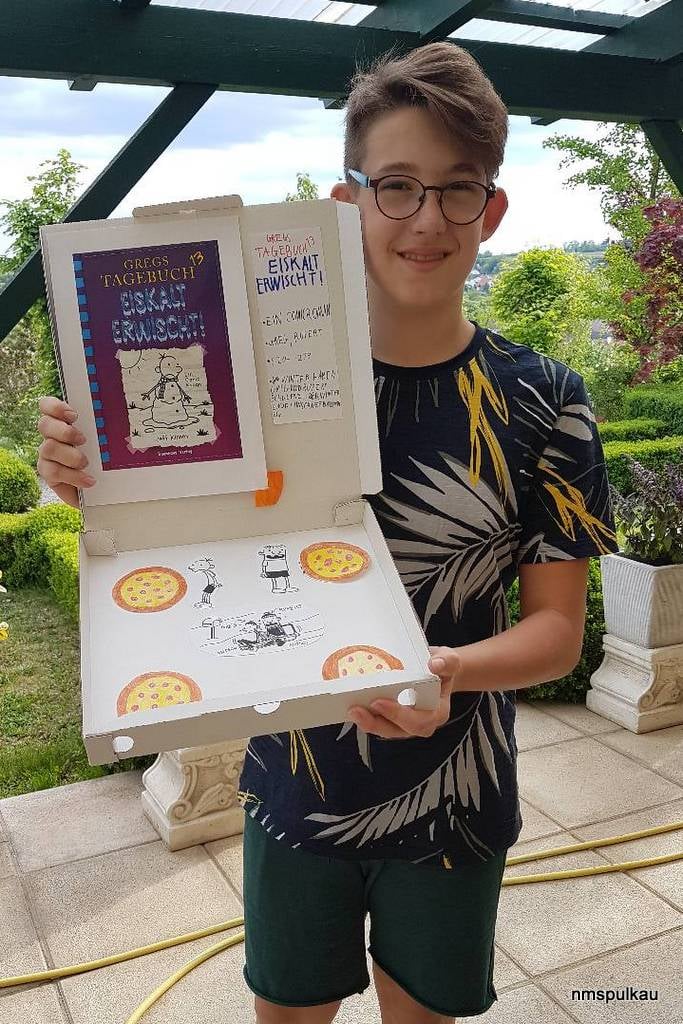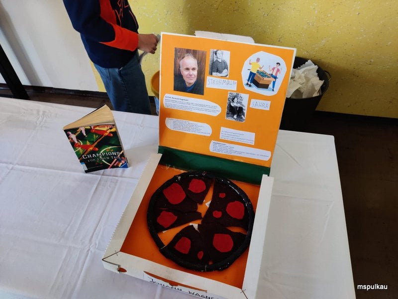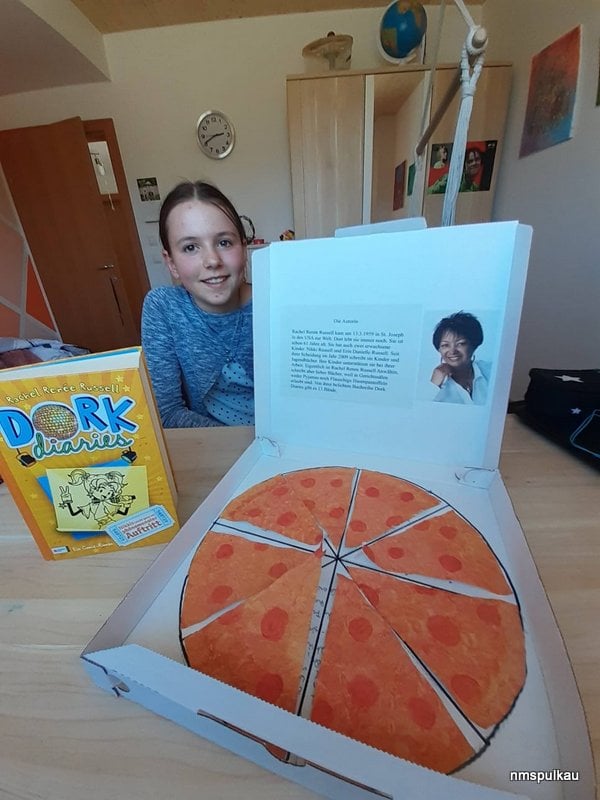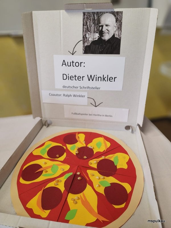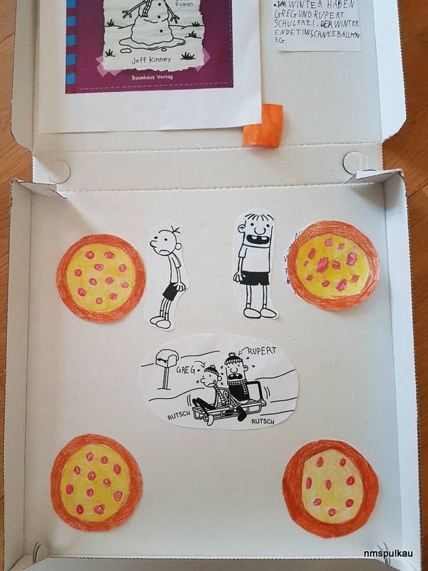 DIe beiden 2. Klassen stllen ein Buch ihrere Wahl mit einer Pizzaschachtel vor, die passend zum Inhalt und Autor des Buches gestaltet wird. Die 2a hat die ersten Schachteln vorgestellt und es sind "köstliche" Präsentationen geworden. Die Deutschlehrerinnen freuen sich auf die neuen Pizzalieferungen nach den Osterferien.