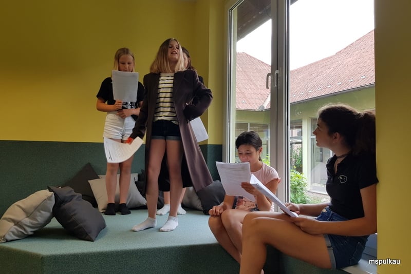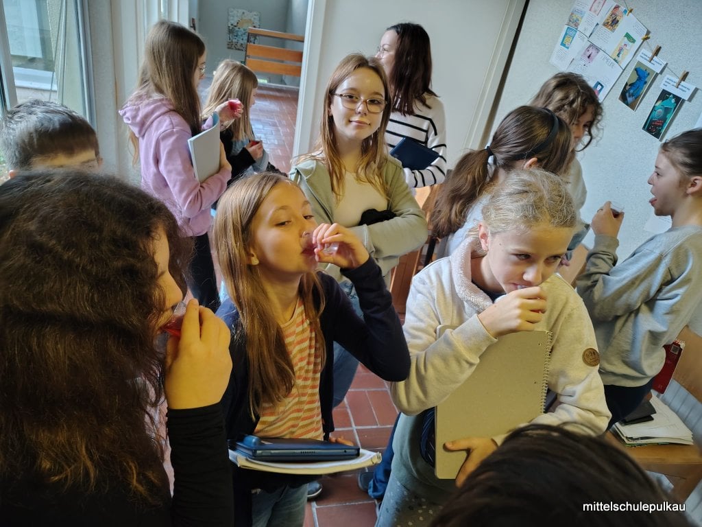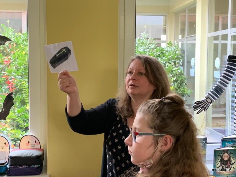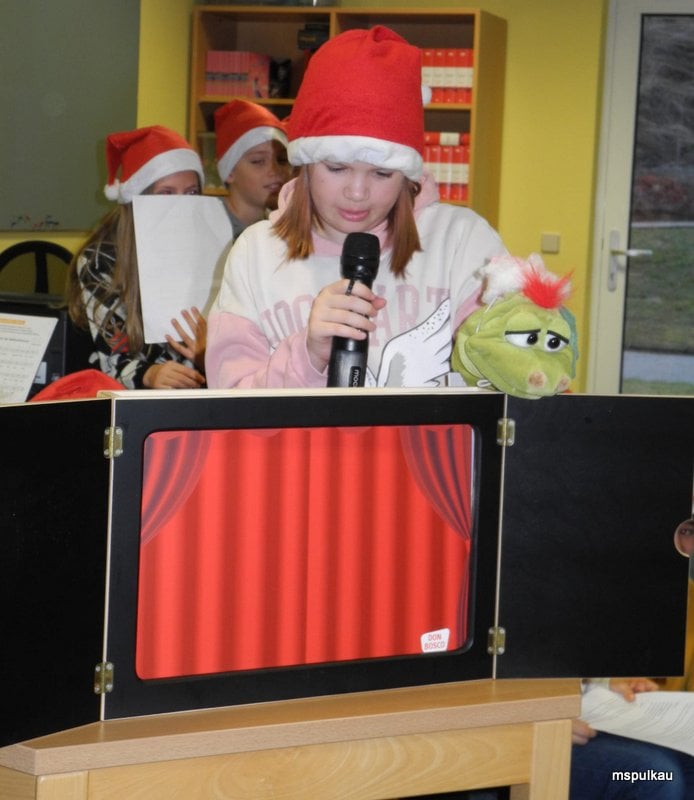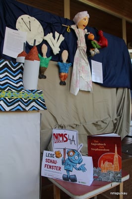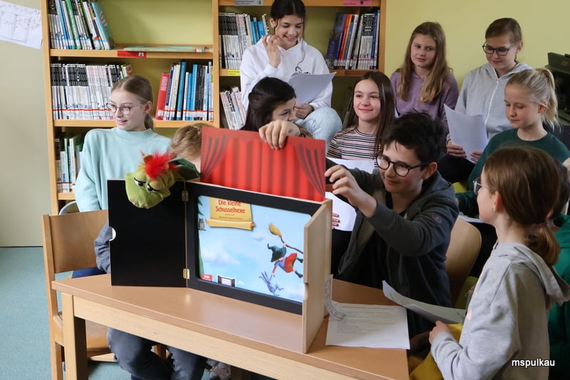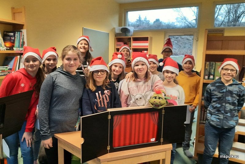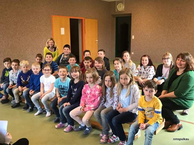 Die Kinder der 2. Klasse Mittelschule luden die Kinder der 1. Klasse VS Pulkau zu einem Lesetheater ein. Es wurde das Bilderbuch "Die Schusselhexe" vorgelesen. Die SchülerInnen bereiteten sich in zwei Deutschstunden auf den Auftritt vor. Zwei Handpuppen hießen unsere jungen Gäste willkommen. Unsere jungen Gäste verfolgten gebannt die Geschichte. Als Abschluss gab es noch selbstgebackene Muffins von Miriam und Emma und Autogrammkarten der 2. Klasse wurden ebenfalls vorbereitet.