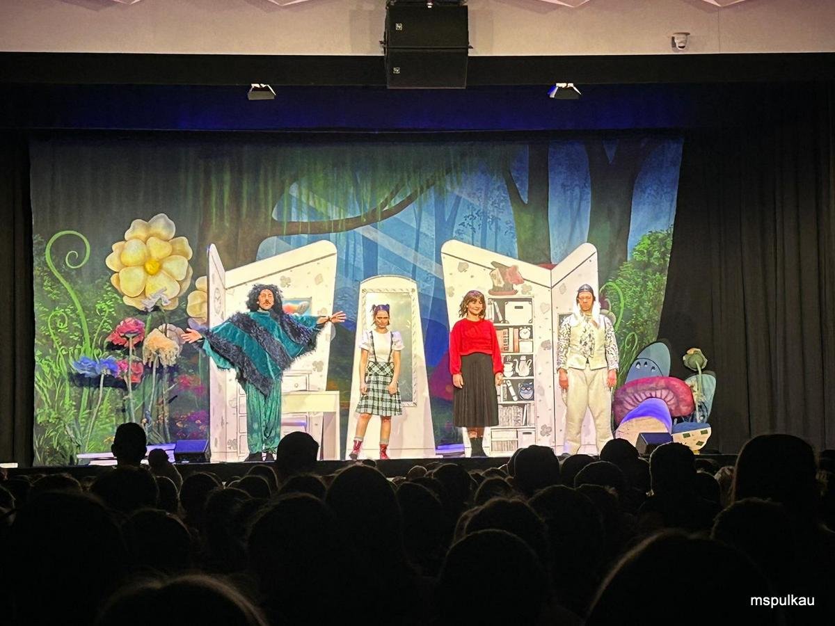 Die beiden 1. Klassen durften in den Stadtsaal Hollabrunn fahren und konnten in die wunderbare Welt von Alice eintauchen. Ein Kaninchen mit einer Uhr? Wo gibt es denn sowas? Neugierig folgt das Mädchen Alice dem Tier hinab in den Kaninchenbau und findet sich wieder in einer fantastischen Welt. Den Kindern gefiel die Vorstellung sehr gut.