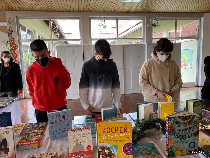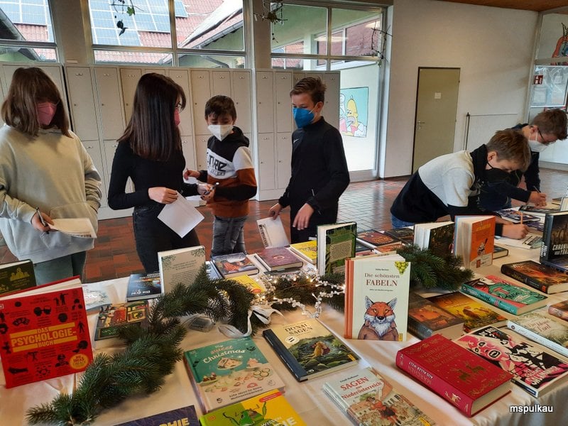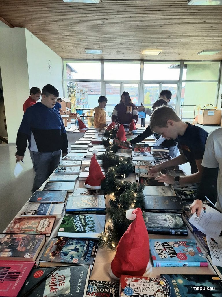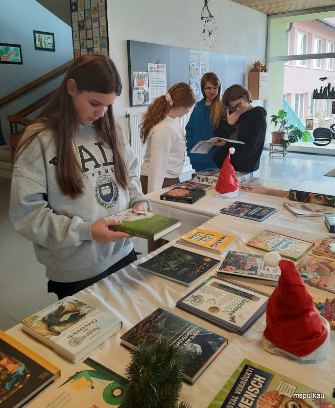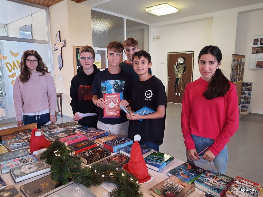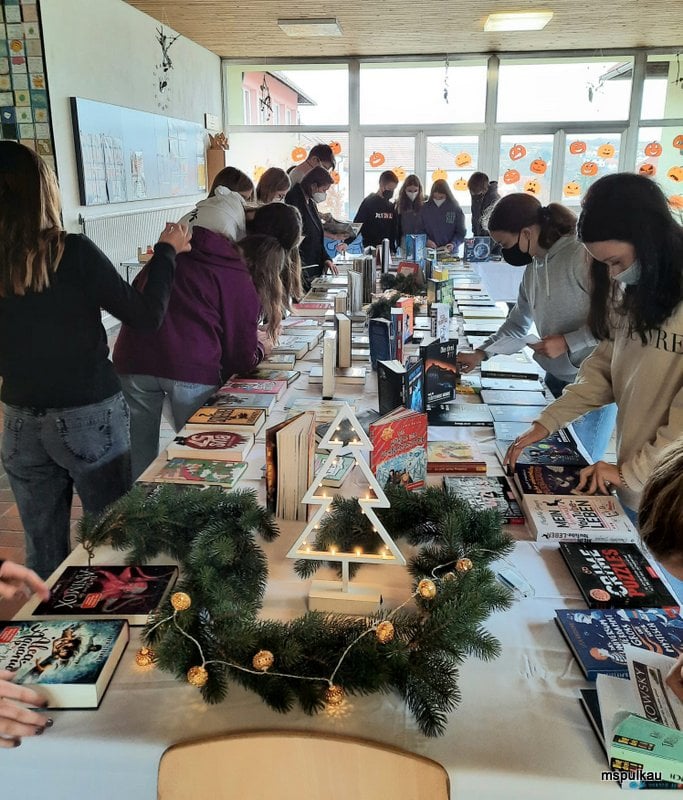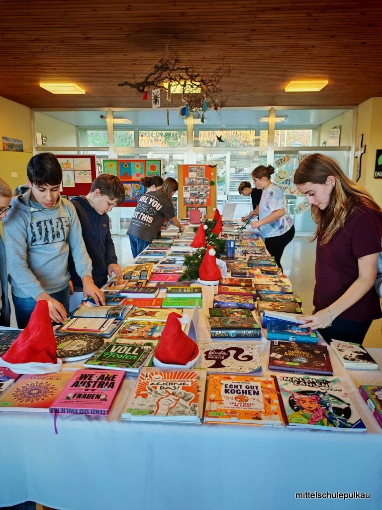 Rechtzeitig vor Weihnachten fand in der Aula wieder die beliebte Buchausstellung statt. Frau Zechmeister organisiert diese jedes Jahr, und auch dieses Mal war die Firma Alesowsky wieder bereit, zahlreiche Bücher zum Schmökern zur Verfügung zu stellen. Sicherlich wird der eine oder andere Titel unter dem Weihnachtsbaum landen.