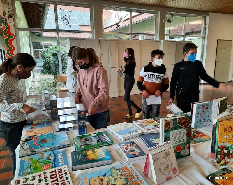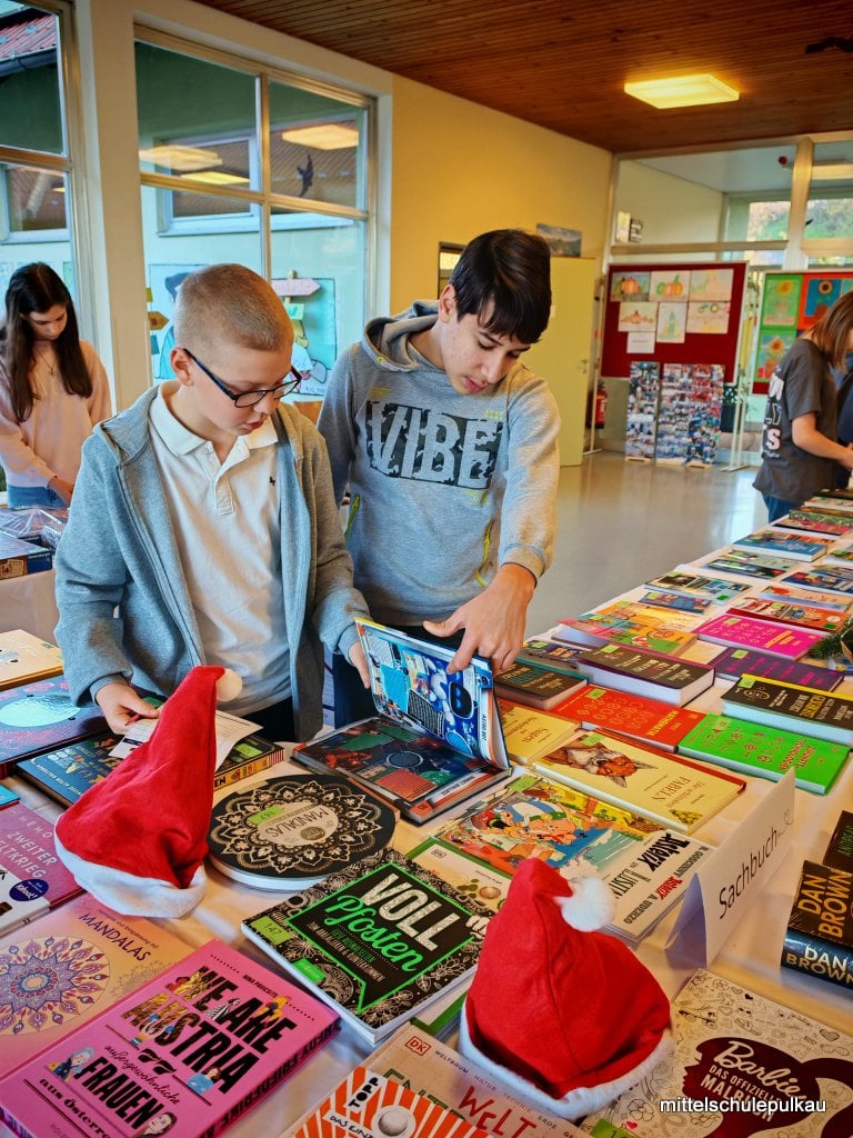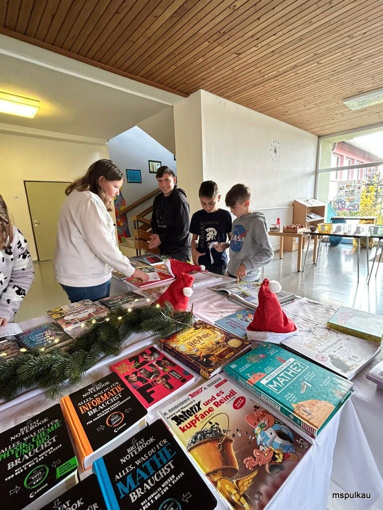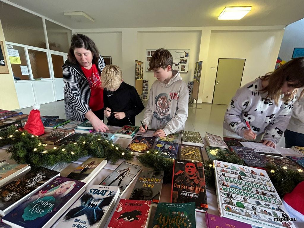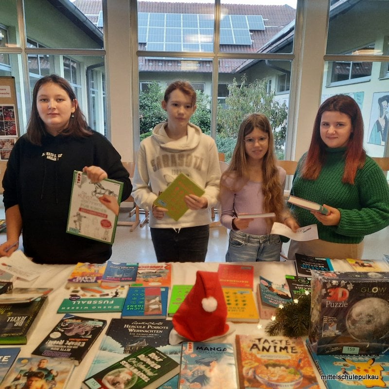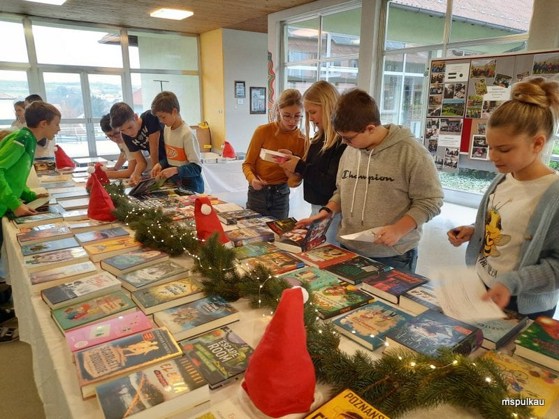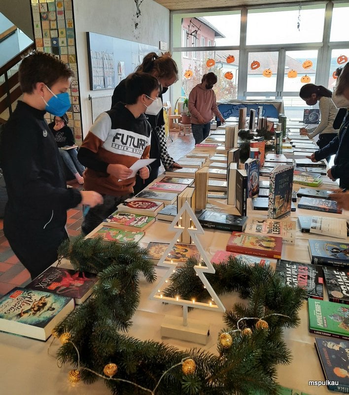 Rechtzeitig vor Weihnachten fand in der Aula wieder die beliebte Buchausstellung statt. Frau Zechmeister organisiert diese jedes Jahr, und auch dieses Mal war die Firma Alesowsky wieder bereit, zahlreiche Bücher zum Schmökern zur Verfügung zu stellen. Sicherlich wird der eine oder andere Titel unter dem Weihnachtsbaum landen.