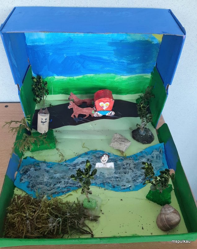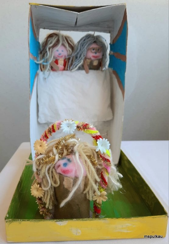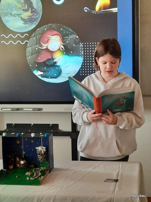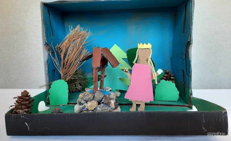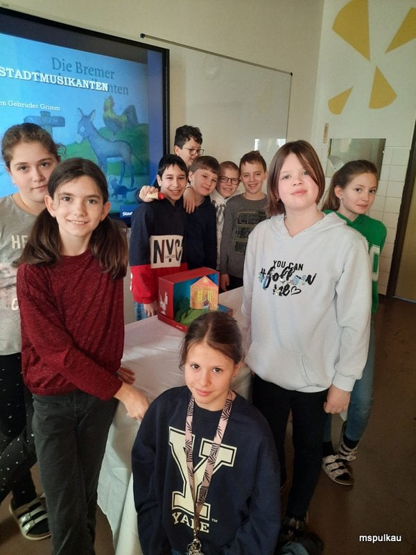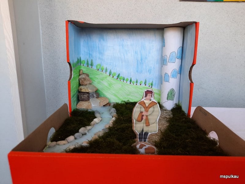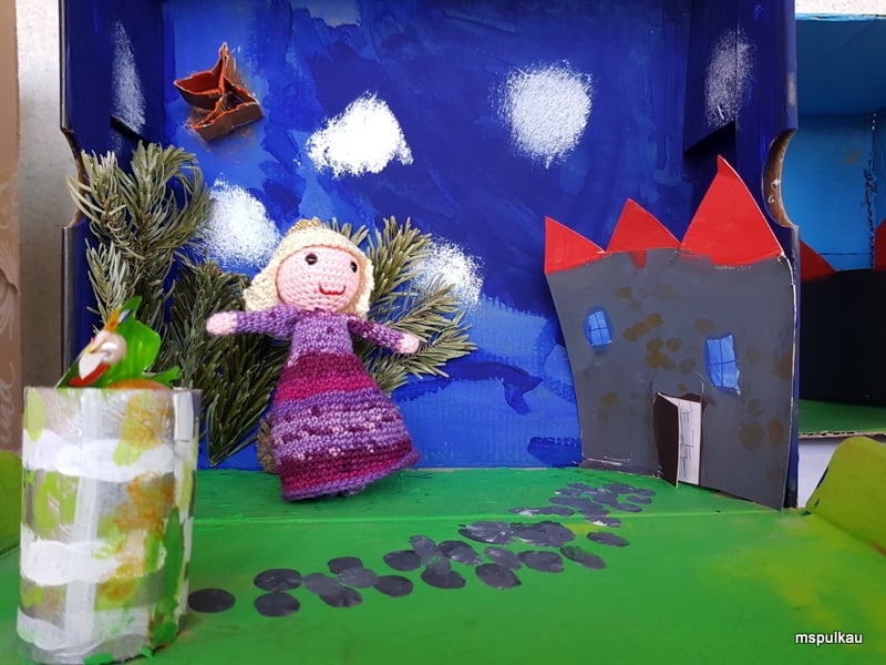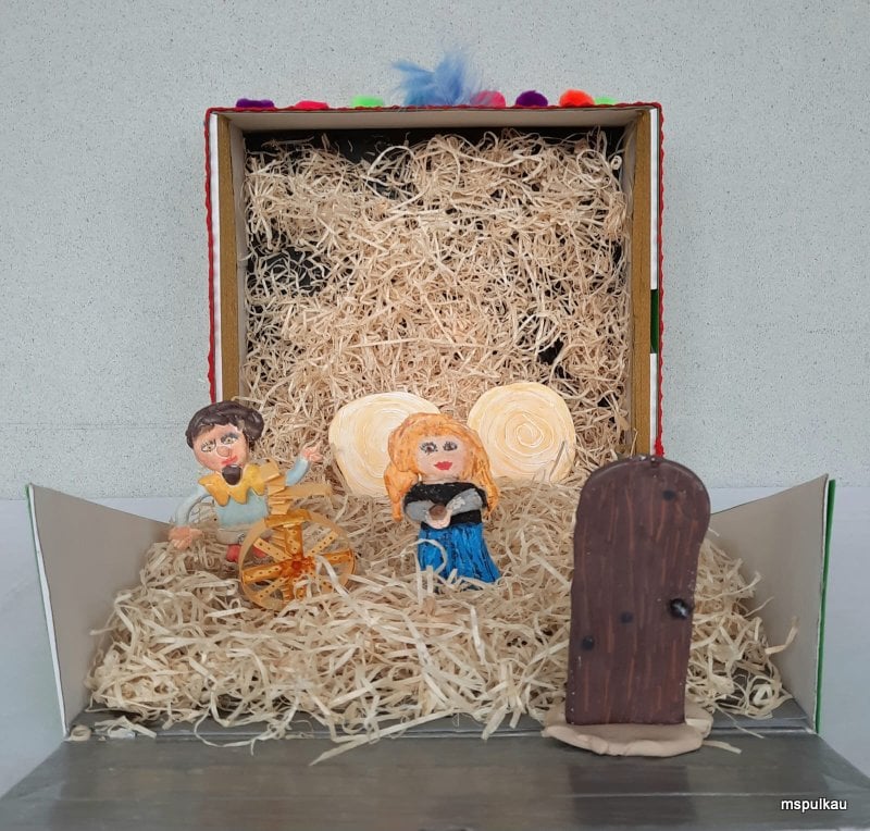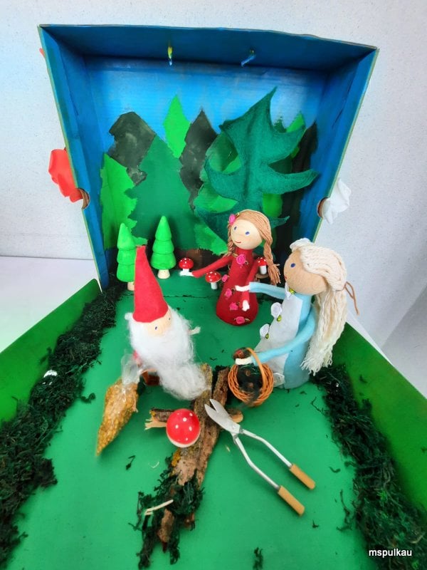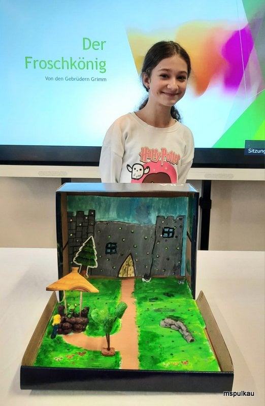 Die erste Klasse gestaltete eine Schuhschachtel passend zu einem Märchen. Jede Schachtel wurde ein kleines Kunstwerk mit vielen unterschiedlichen Details. Das Märchen wurde dann in der Klasse präsentiert. Sehr gut gemacht!