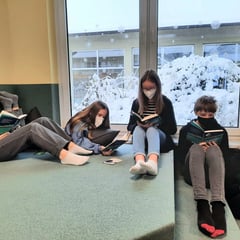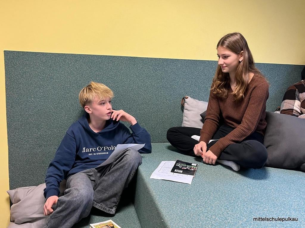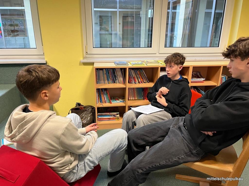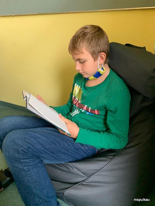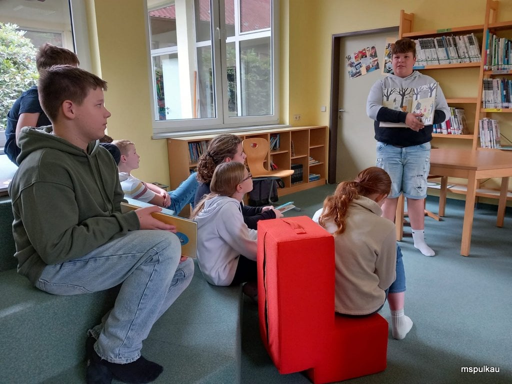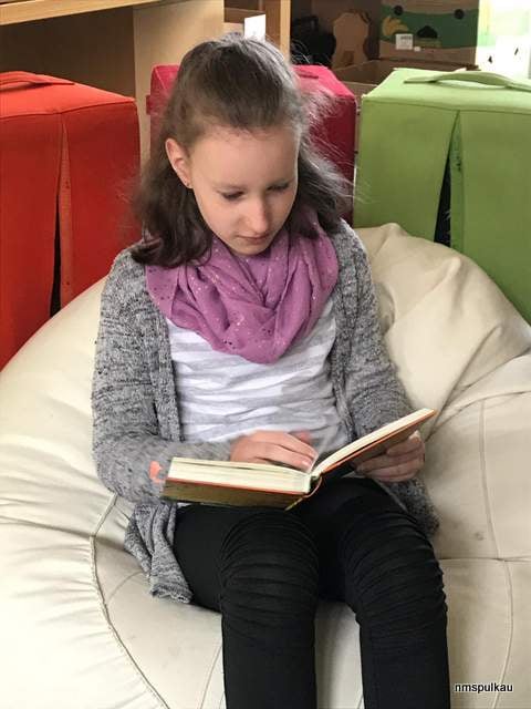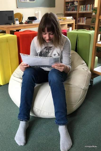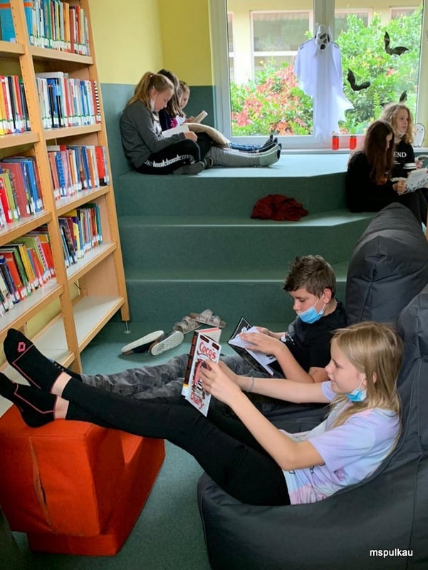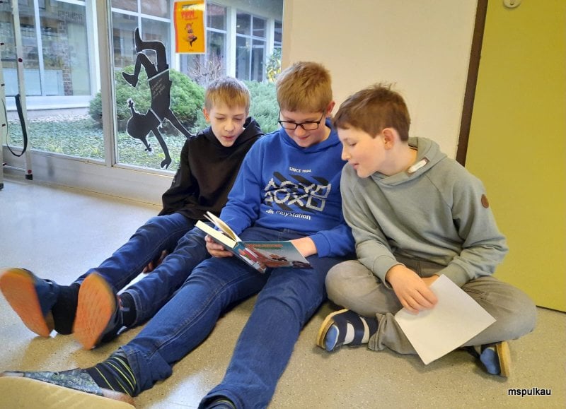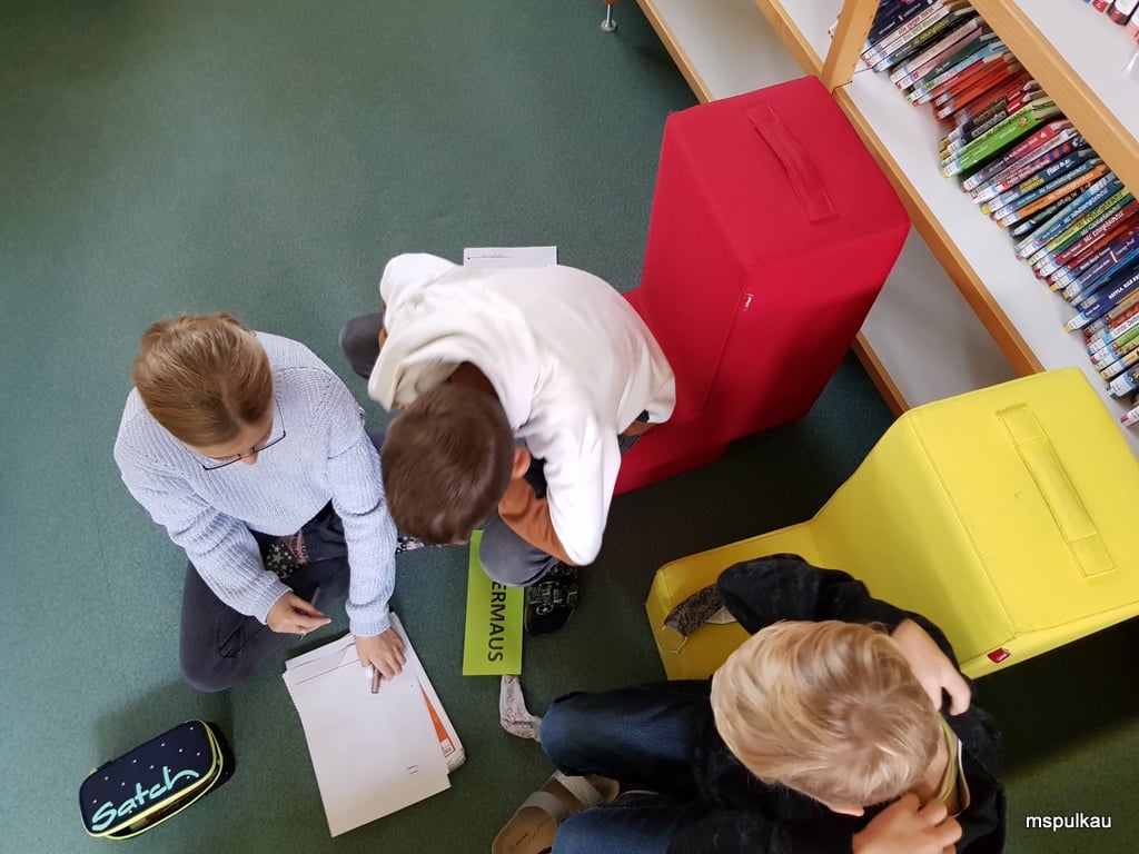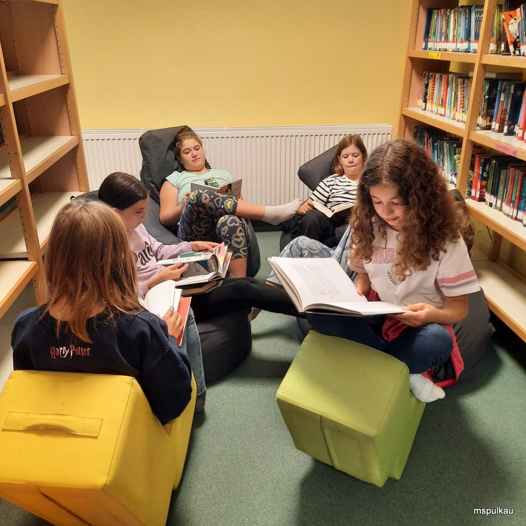 Der Besuch unserer Bibliothek im Rahmen des Unterrichts steht immer wieder auf dem Programm. Diesmal konnte die 1a sich gemütlich mit einem Buch auf den bequemen Sitzpolstern niederlassen und im Buch lesen.