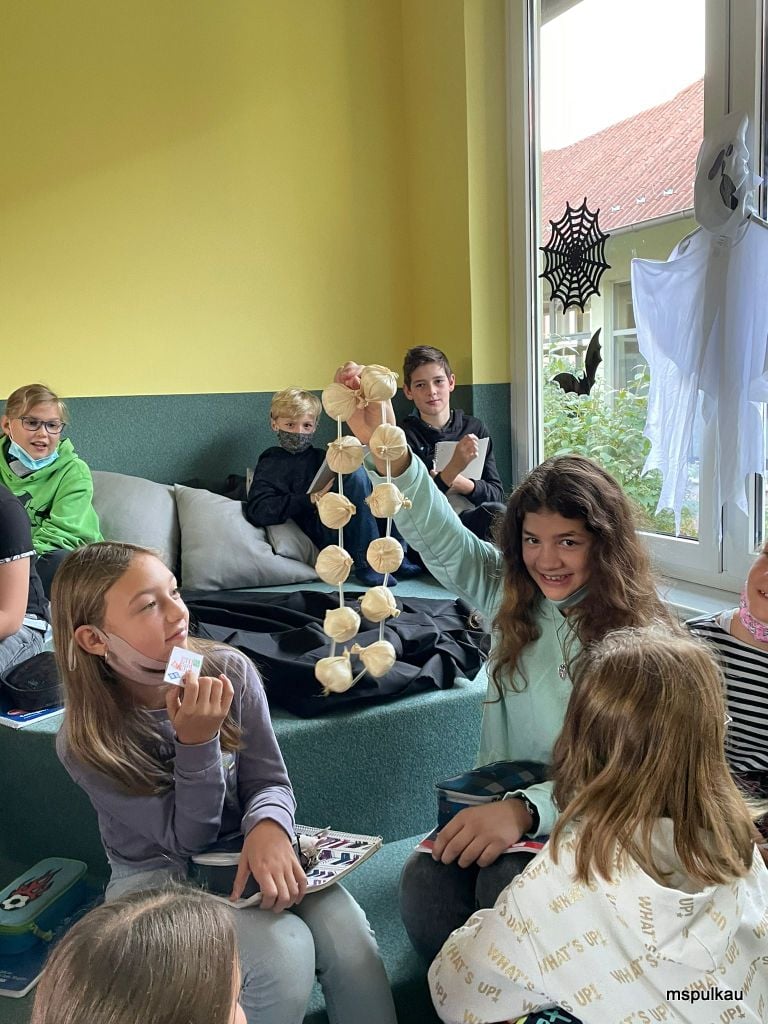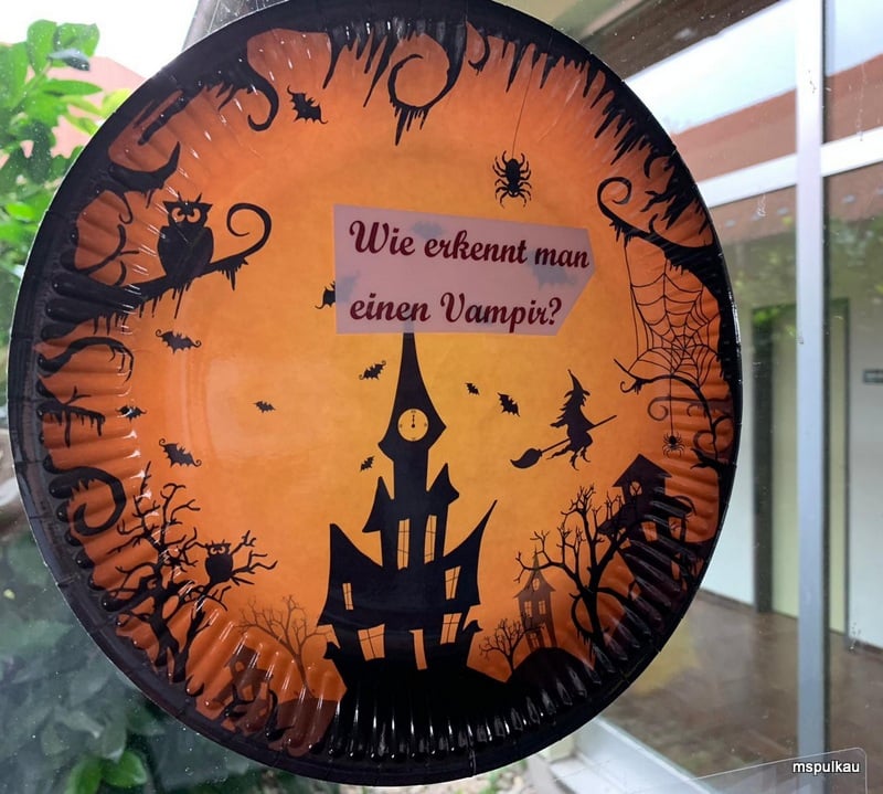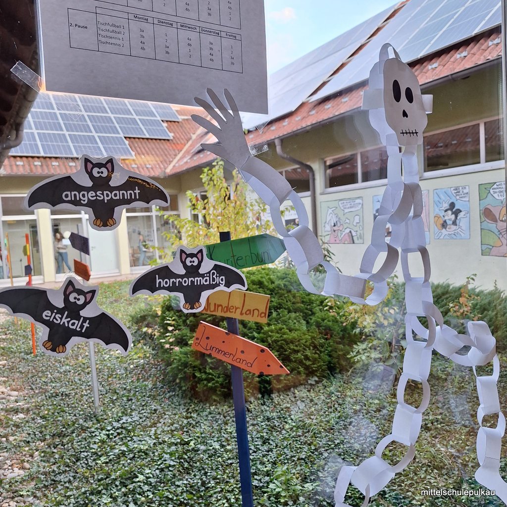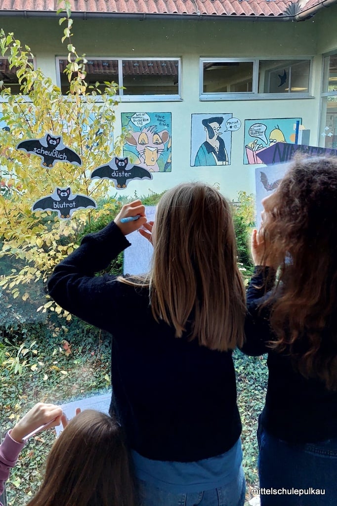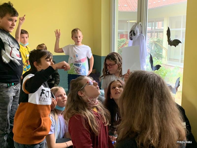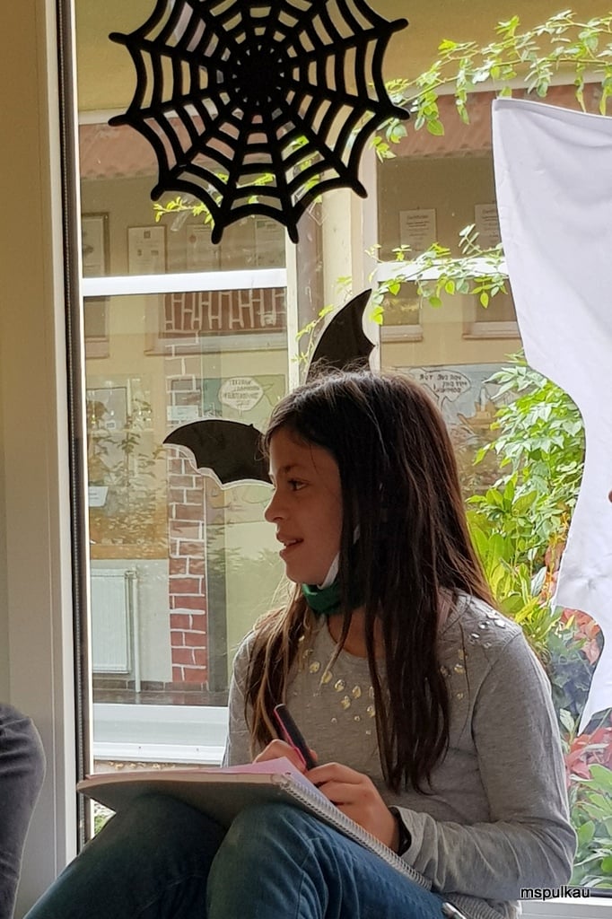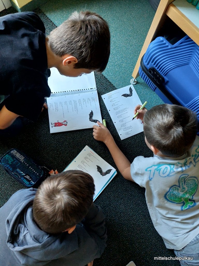 Zwei Deutschstunden der etwas anderen Art durfte die 1. Klasse kurz vor Halloween erleben. Die Bibliothek war zum Fürchten schön dekoriert und Bücher zum Thema standen bereit. Geschichten mit Schockfaktor, verpflichtende Verkostung von Vampirblut, Rätsel und Spiele sorgten für gruselige Stimmung. Zum Schluss schmökerten die Kinder in den Büchern und durften eines mitnehmen. Gespenstischer Lesespaß für die Herbstferien.