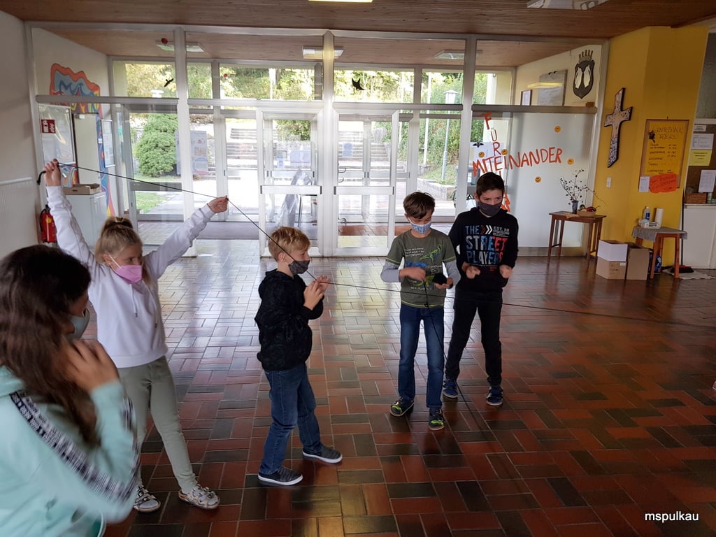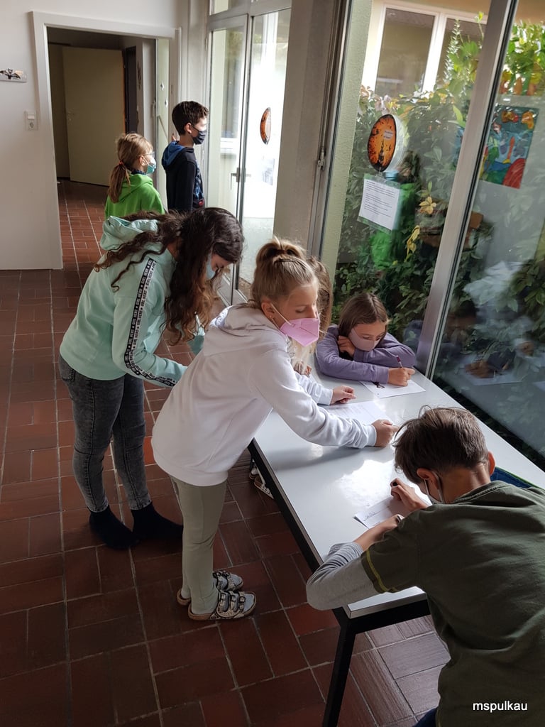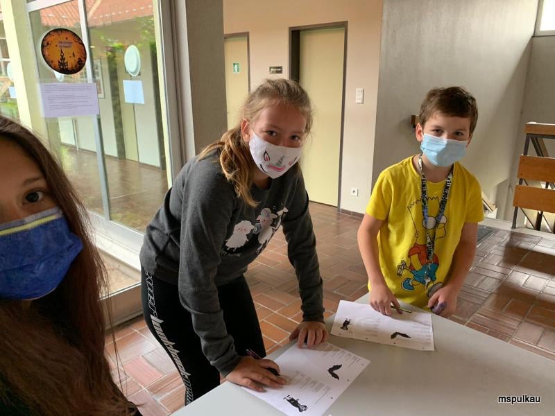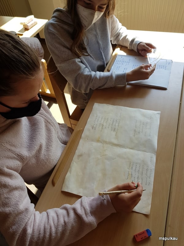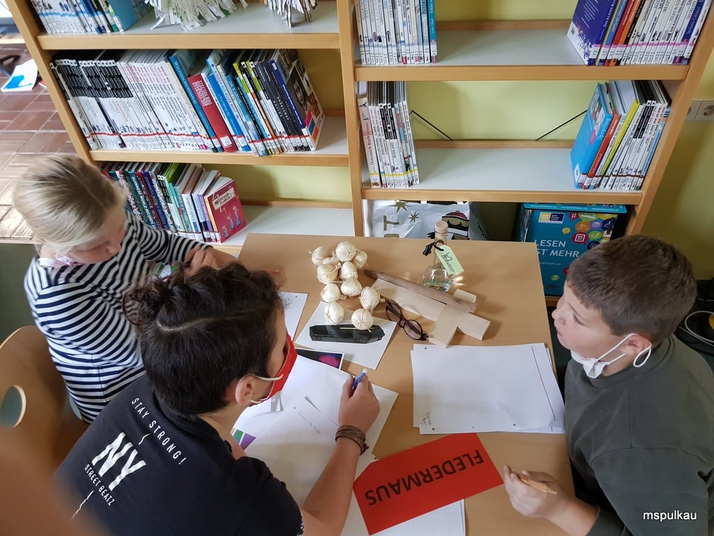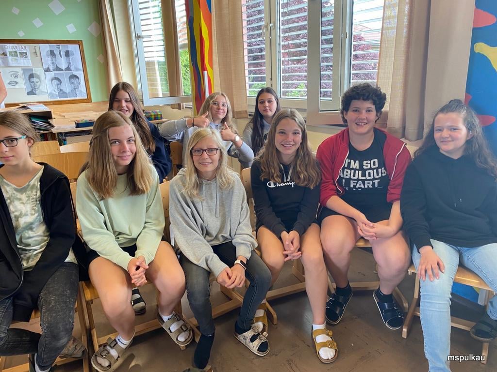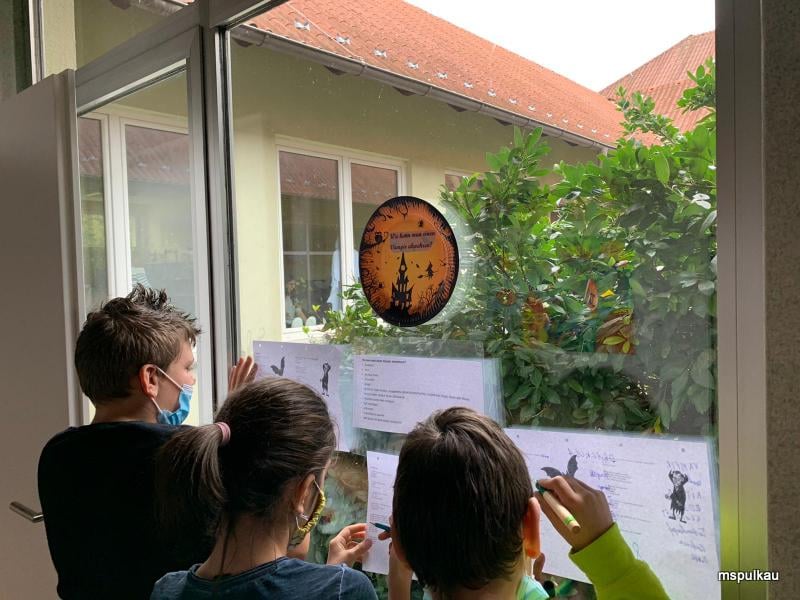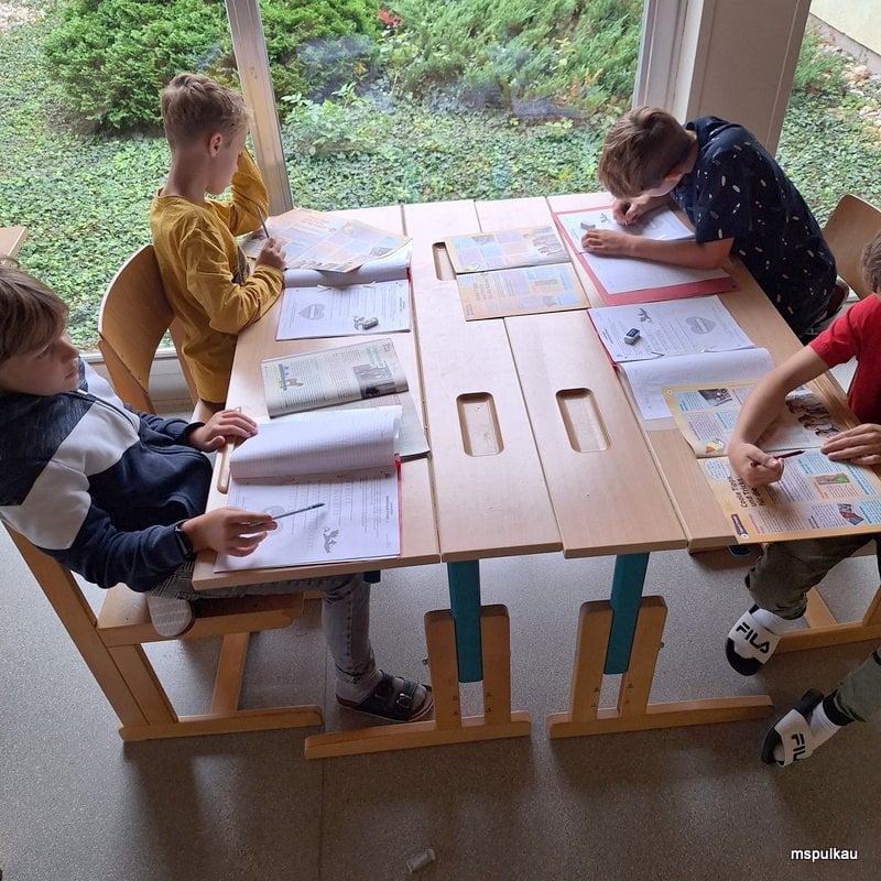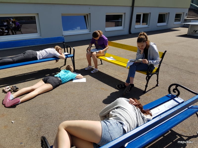 Wir nutzen in verschiedenen Gegenständen das warme Wetter und verwenden den Hof als "Outdoor-Klassenzimmer".