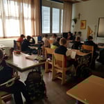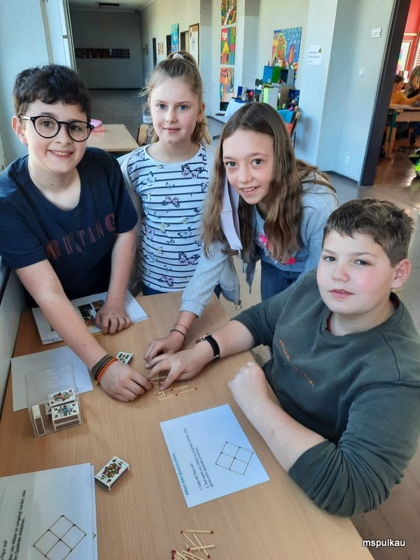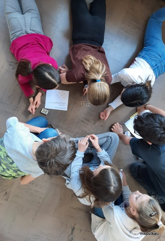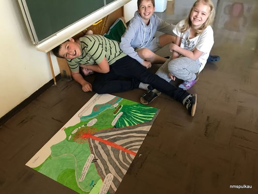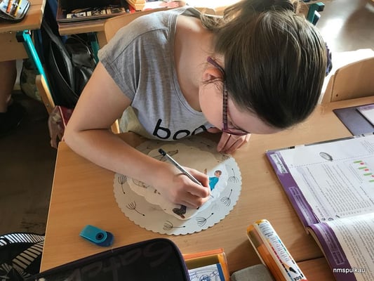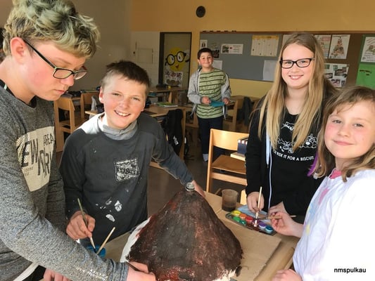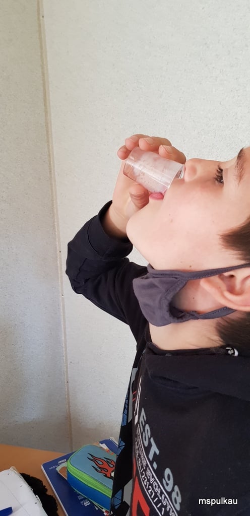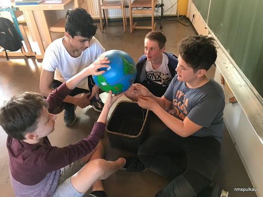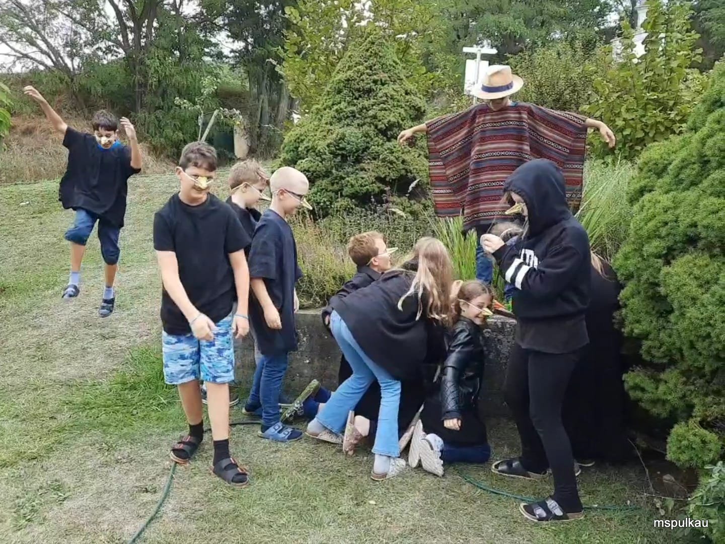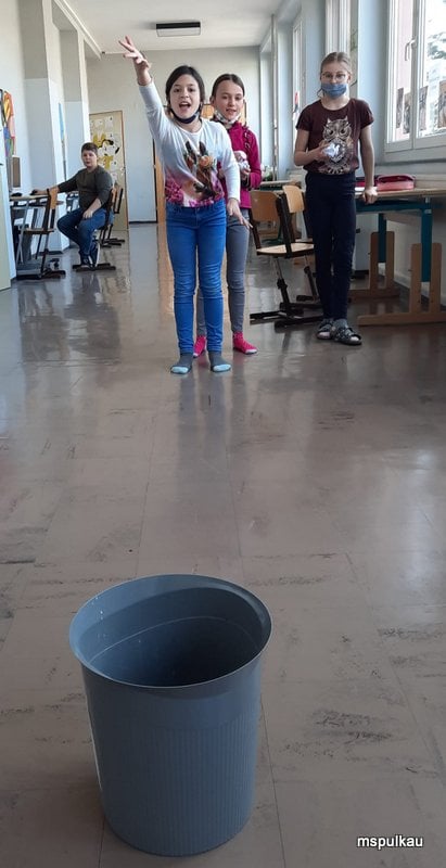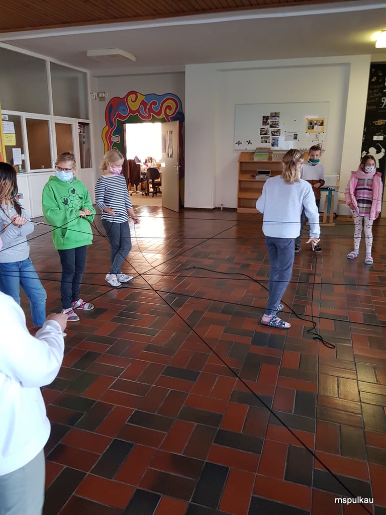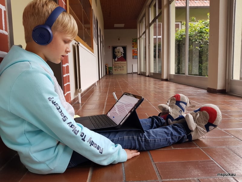 Wir nutzen in verschiedenen Gegenständen das warme Wetter und verwenden den Hof als "Outdoor-Klassenzimmer".