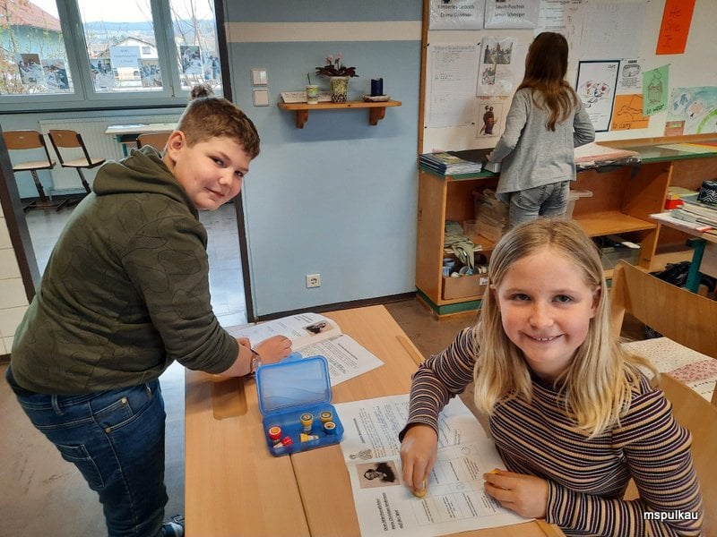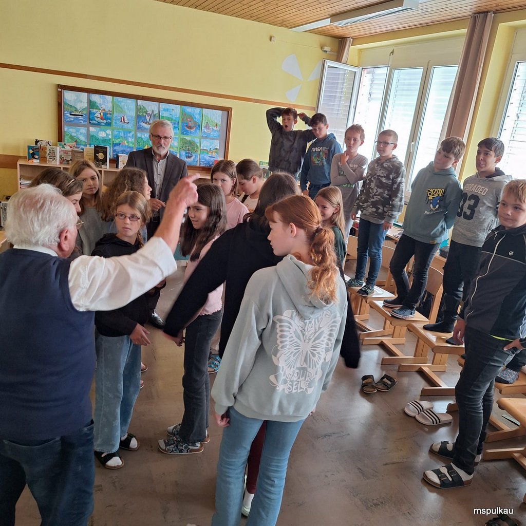 Um diese Frage zu beantworten, lud Frau Zechmeister Herrn OSR Hermann Jagenteufel mit seinem Schwiegersohn Herrn OSR Wolfgang Waldherr in die Schule ein. Passend zum Deutschunterricht der 2. Klassen (Spiele beschreiben) erfuhren die Kinder, welche Spiele in der Kindheit der Vortragenden aktuell waren. Die zwei Unterrichtseinheiten vergingen wie im Flug, da die Kinder immer wieder zum Ausprobieren eingeladen wurden. Danke für den Besuch an unserer Schule.