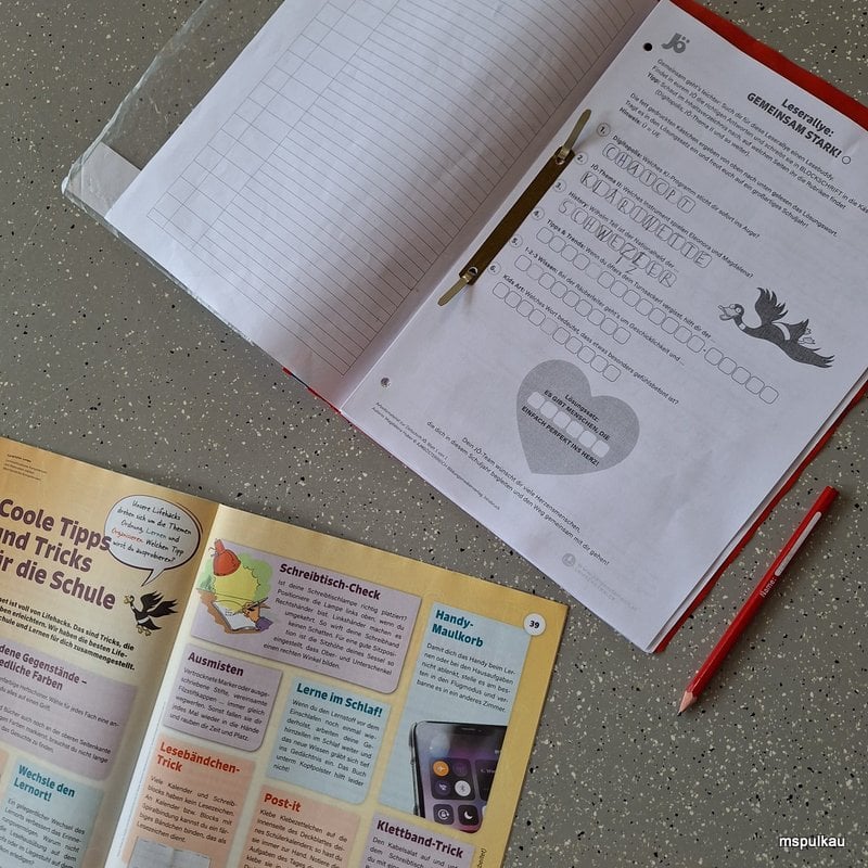 Die Kinder der 1. Klasse führten eine Leserallye mit dem "JÖ-Heft" erfolgreich in Partnerarbeit durch. Dazu durften sich die Schüler und Schülerinnen einen Platz in der Aula oder im Klassenzimmer suchen. Es wurde konzentriert und motiviert gearbeitet.