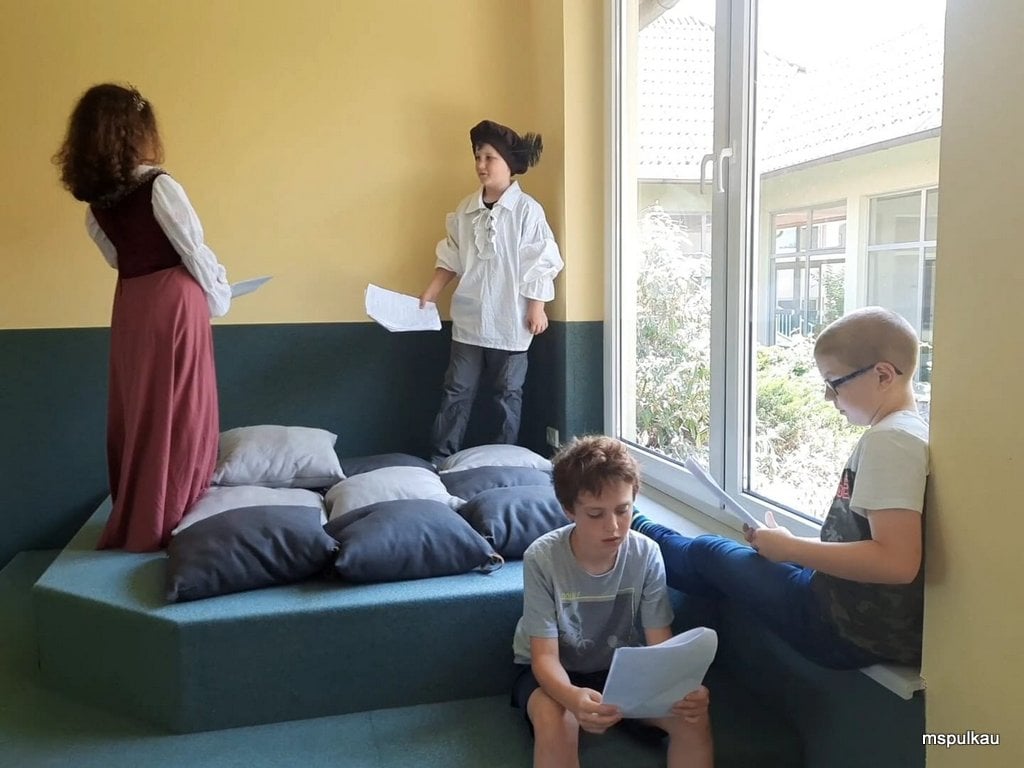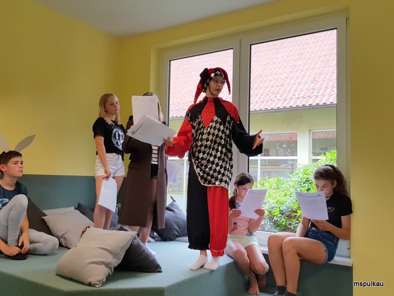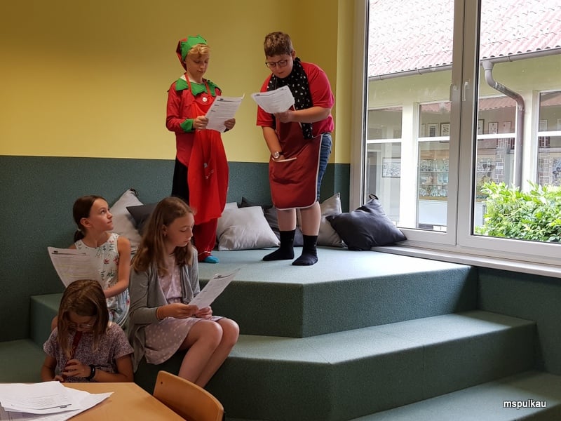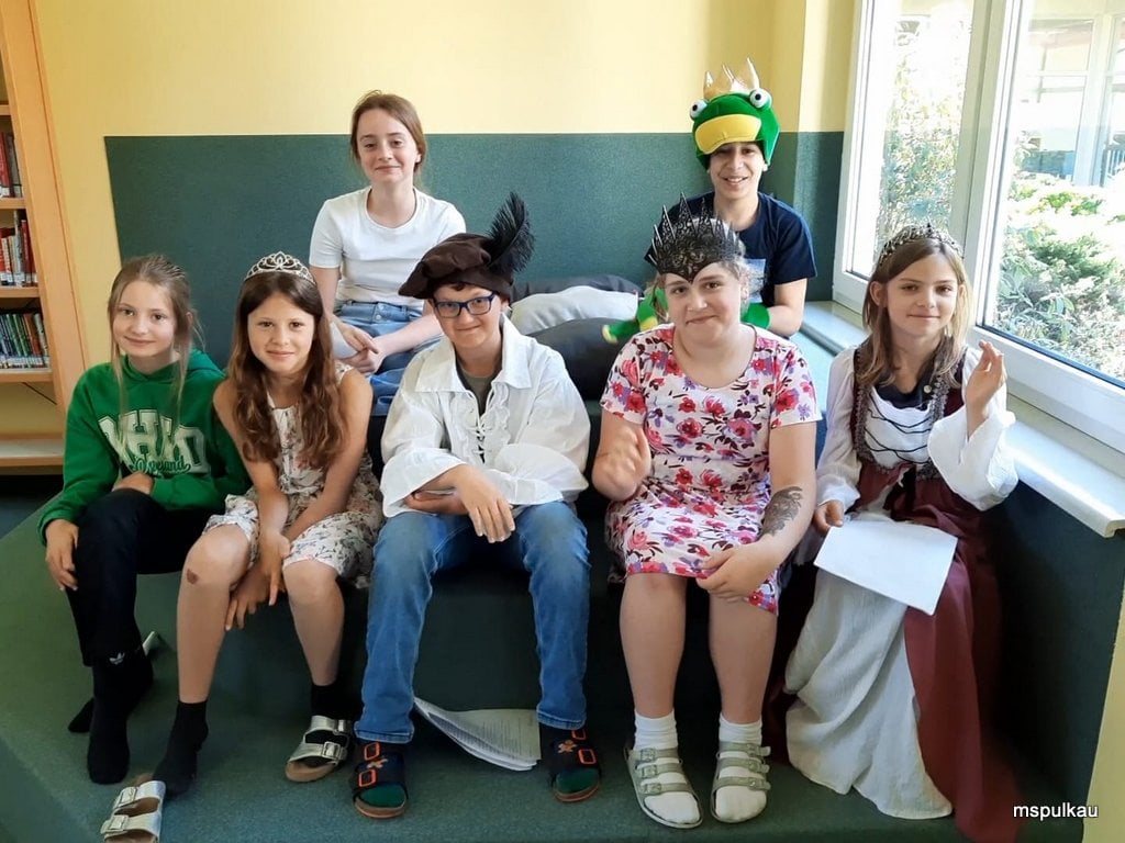 Die Schülerinnen und Schüler hatten viel Spaß beim ersten Lesetheater. Im Deutschunterricht wird gerade das Thema Märchen erarbeitet und so bot es sich an, ein Lesetheater durchzuführen. Die Kinder brachten fleißig Requisiten mit und schon gings los. Die JungschauspielerInnen waren sich einig: " Das machen wir wieder."