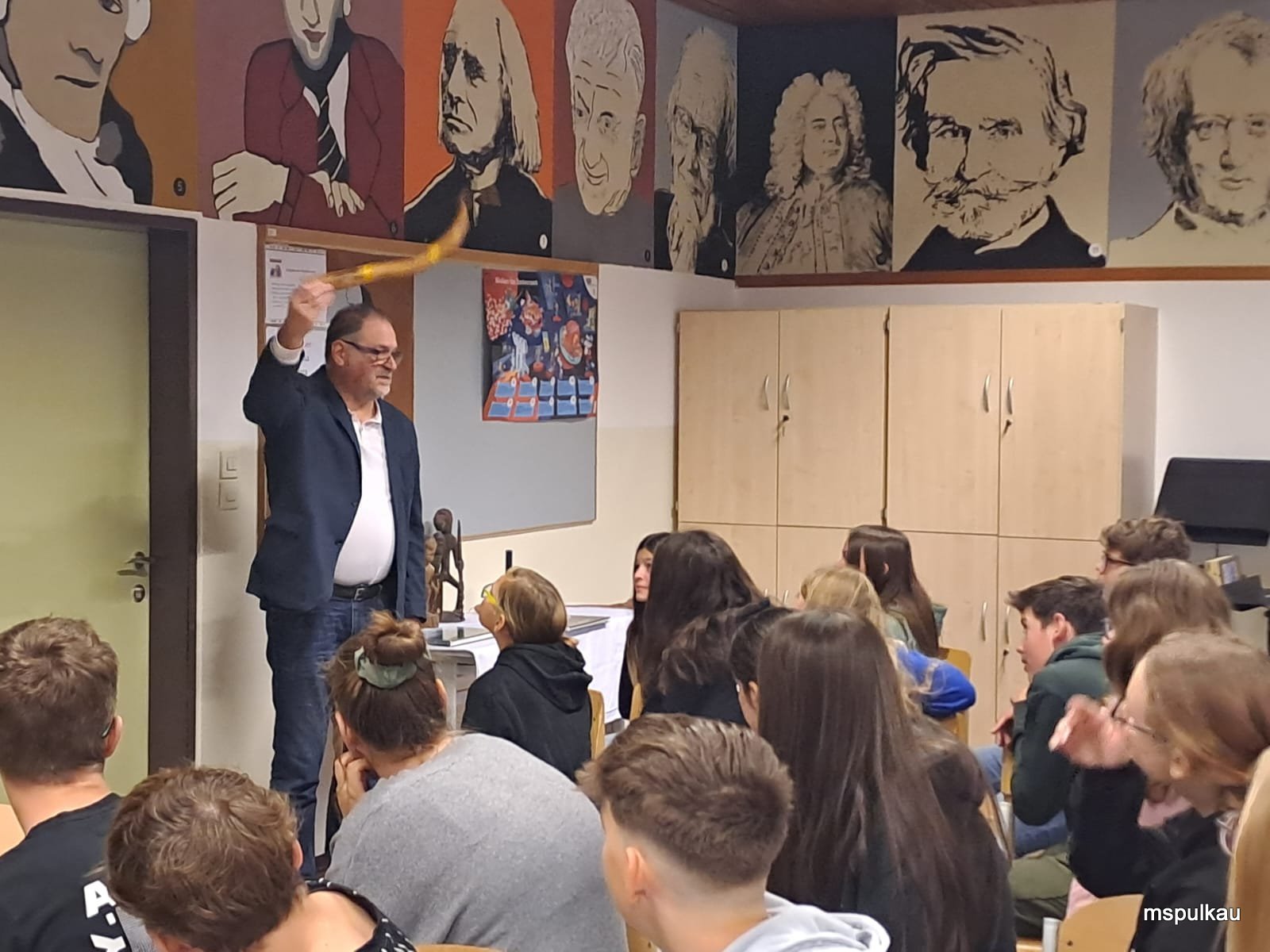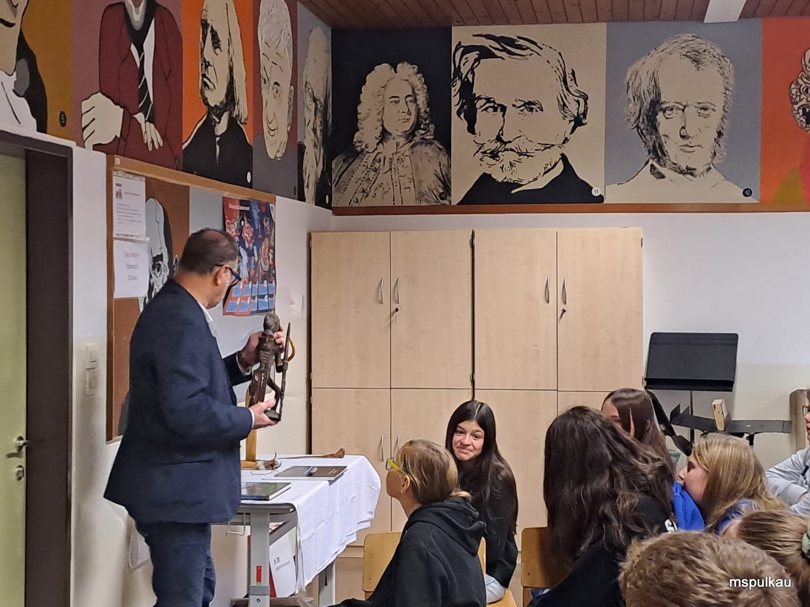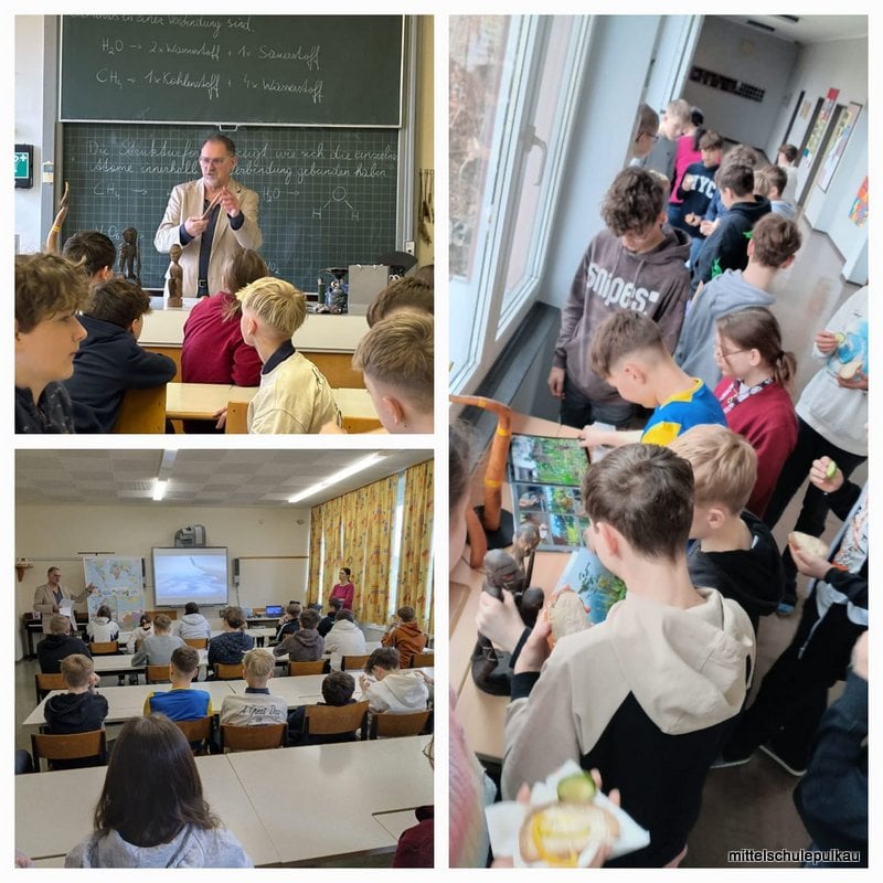 Ein weiterer Lesegast ist unser ehemaliger Kollege Kurt Schneider. Er hat immer Interessantes von seinen Reisen zu berichten und zeigt dazu immer wieder Fotos. Diesmal aus Indonesien, Sulawesi und Westpapua. Die Schüler und Schülerinnen der 3a und 3b hörten aufmerksam zu und hatte im Anschluss noch die Gelegenheit unterschiedliche Objekte aus diesen Ländern zu begutachten.