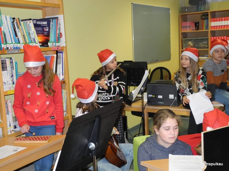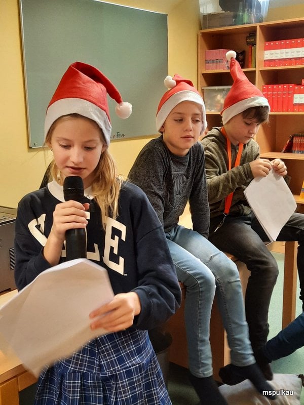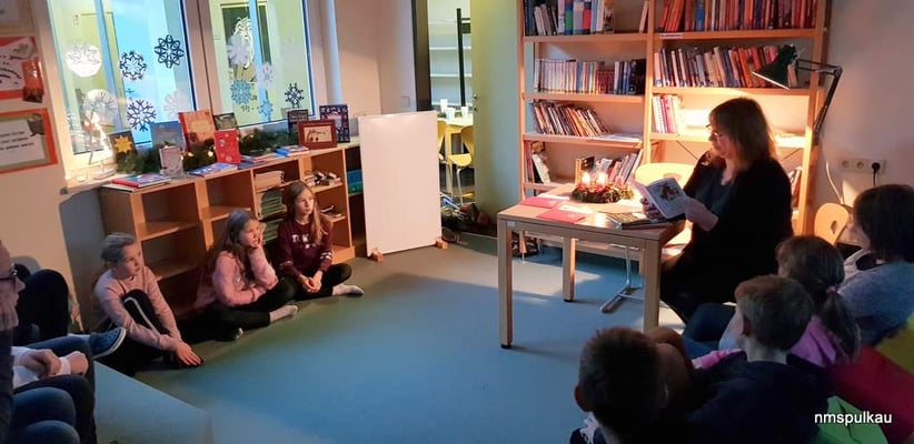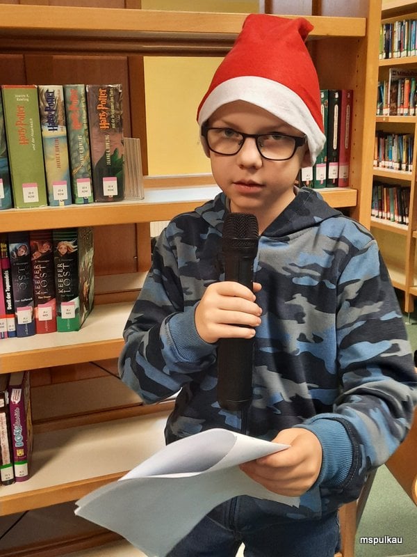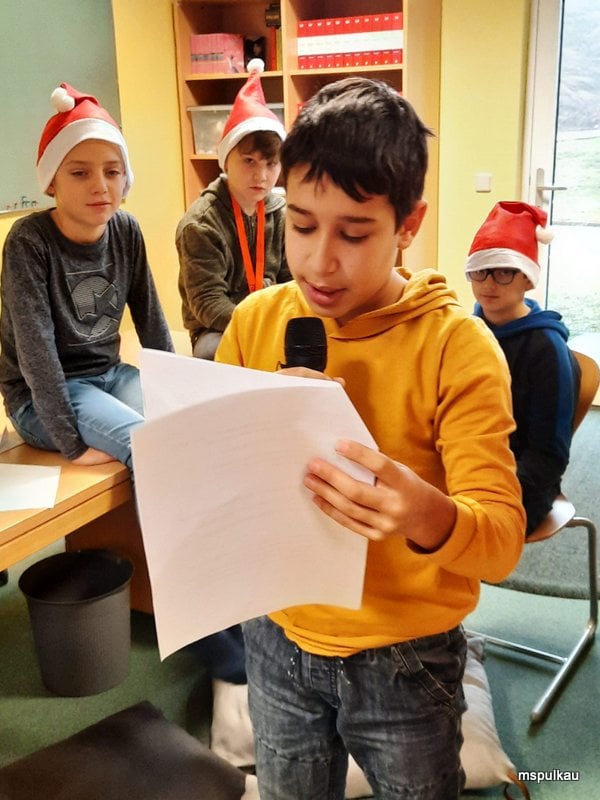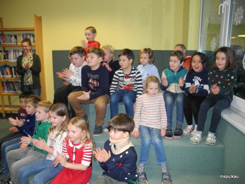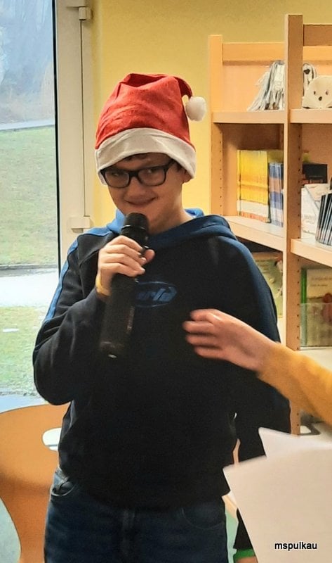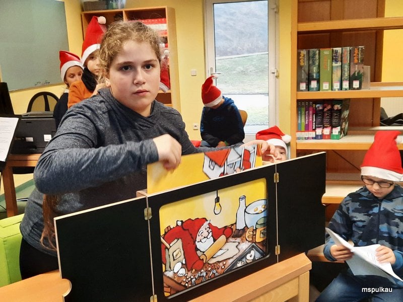 Die Kinder der 1a MS luden die Kinder der 1.Klasse VS zu einer Leseaktion in die Schulbibliothek ein. Vorgelesen wurde das Bilderbuch "Der kleine Weihnachtsmann". Die jungen Gäste verfolgten gebannt die Geschichte und sparten am Ende nicht mit Applaus, den sich die Kinder der 1a mit ihrer Darbietung mehr als verdient hatten.