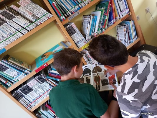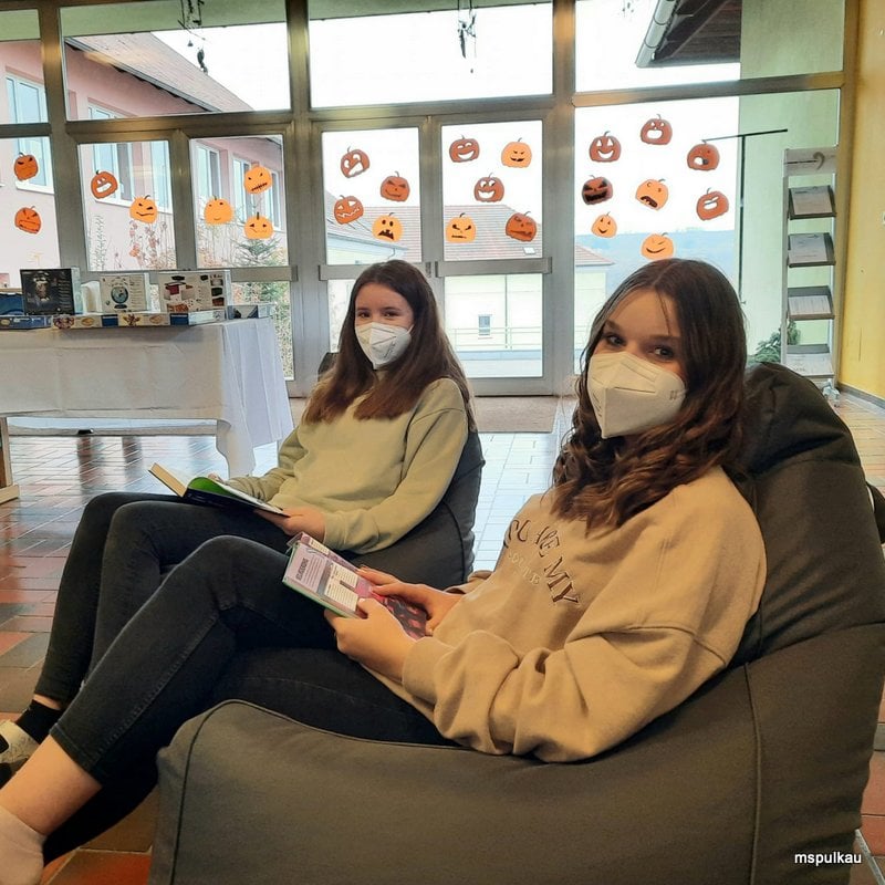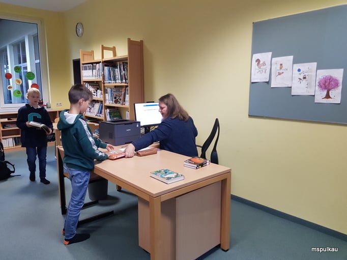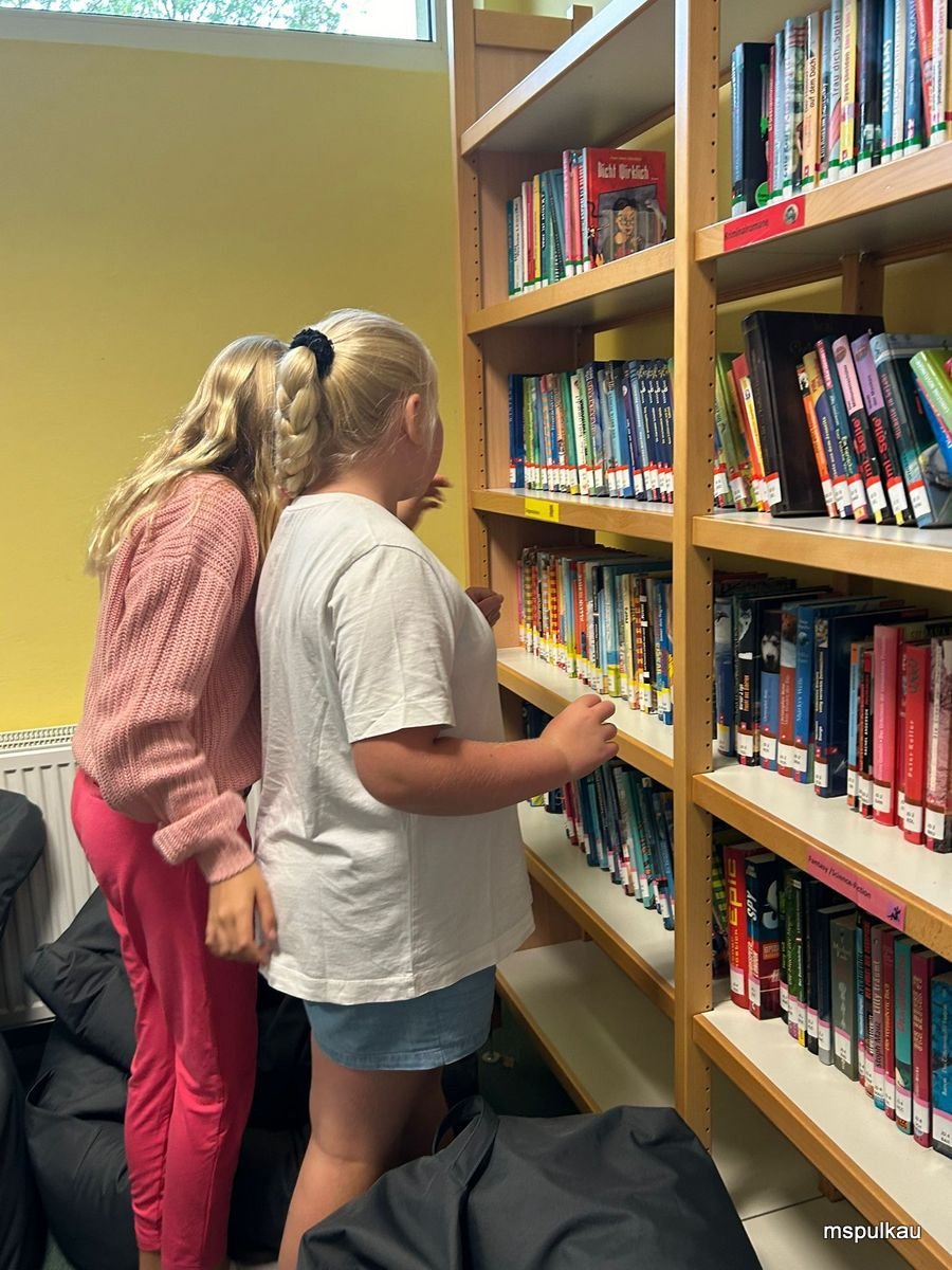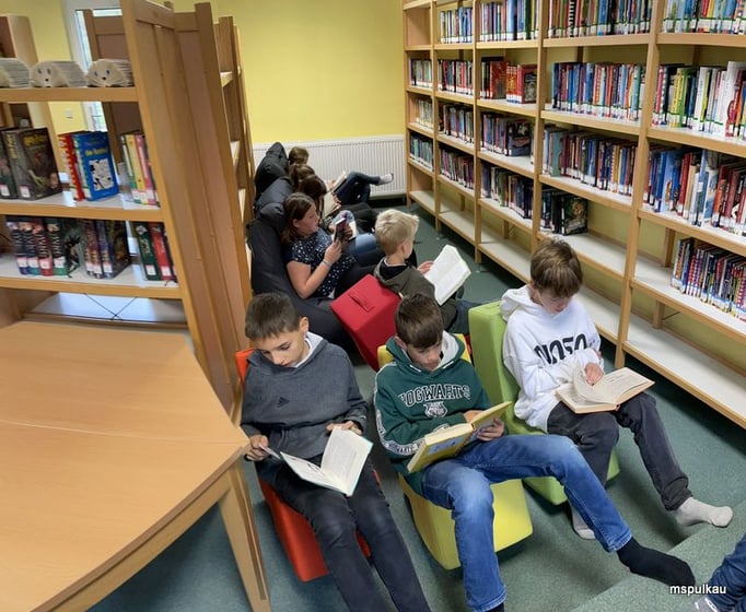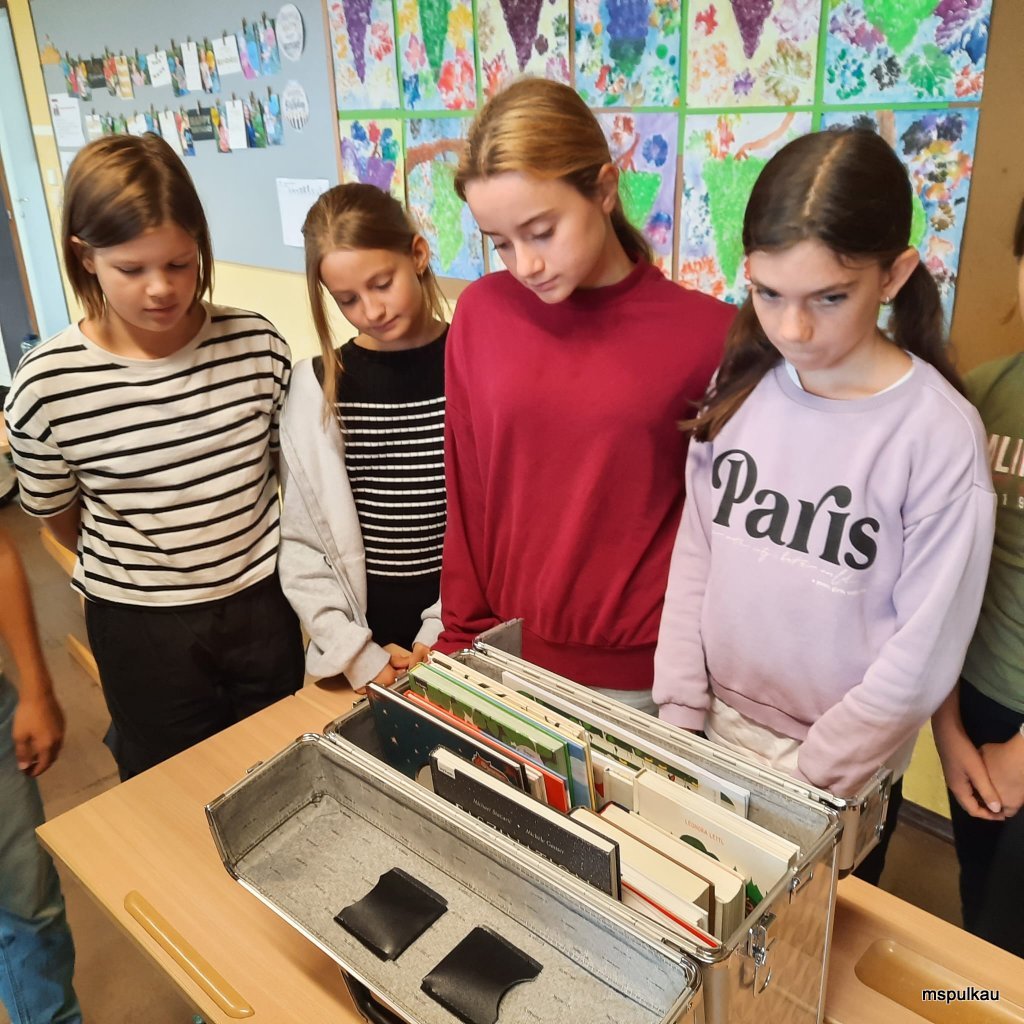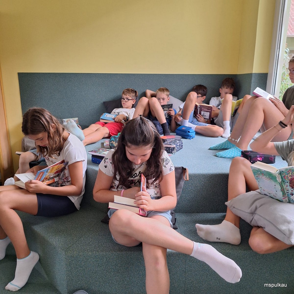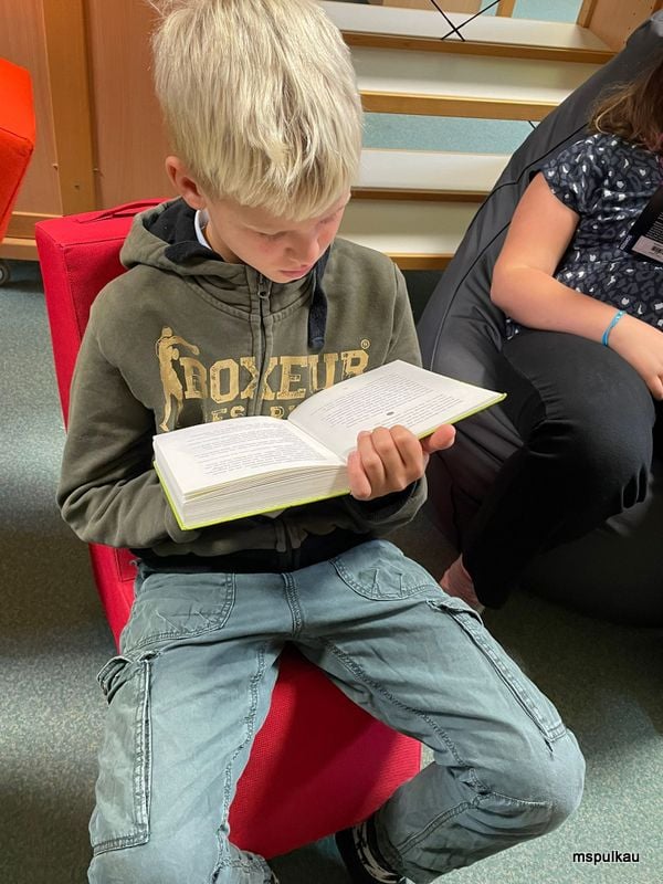 Die ersten Klassen durften bereits einige Stunden in der Bibliothek verbringen und in Büchern schmökern und lesen.