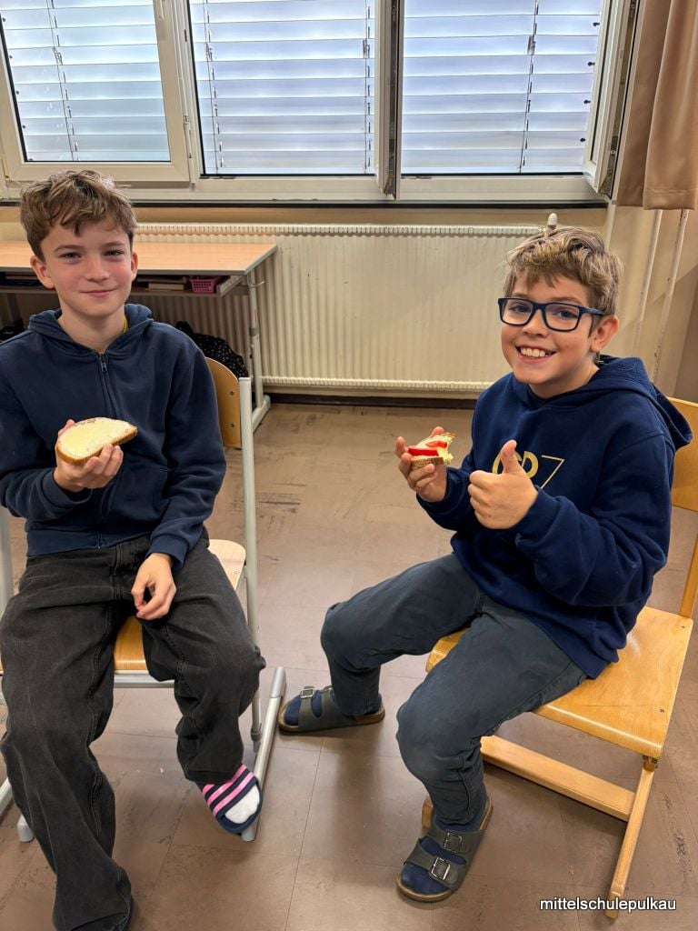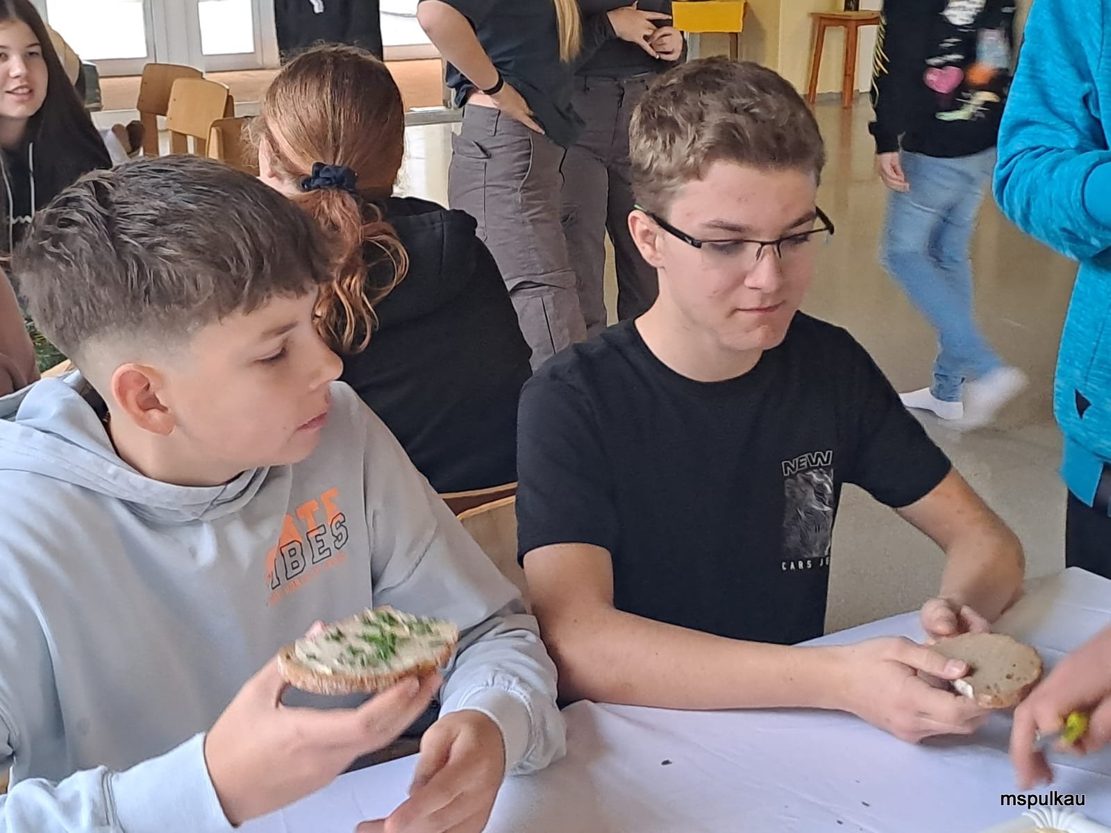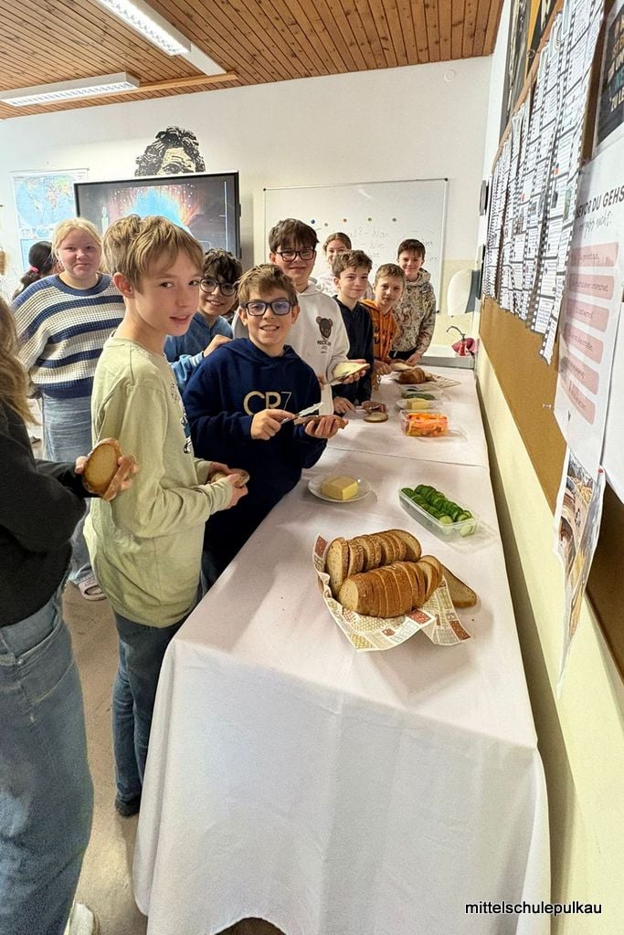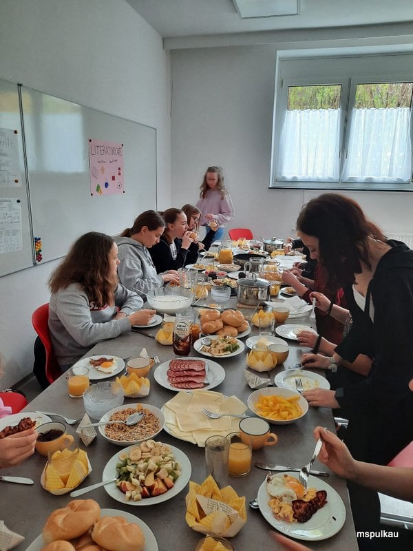 Die 4. Klasse bereitete gemeinsam mit ihrer Klassenvorständin Frau Zechmeister ein köstliches Frühstück zu. Es wurde gegessen, im aktuellen Topicheft gelesen, sowie Brett- und Kartenspiele gespielt. Auch Geschichten aus den vergangenen vier Jahren an der MS wurden ausgetauscht.
