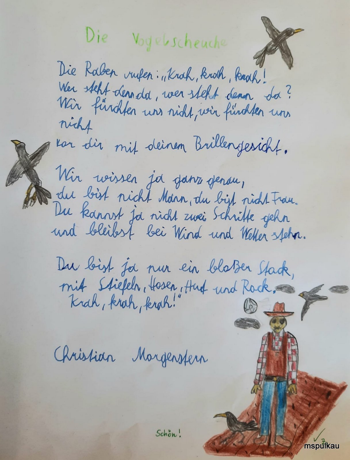 1a und 1b: Deutschunterricht - "Die Vogelscheuche" - von Christian Morgenstern