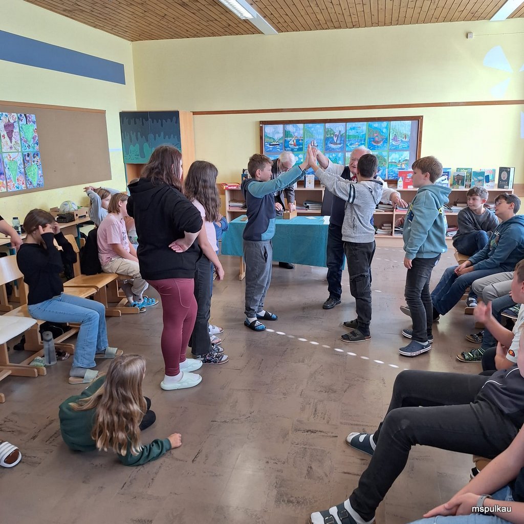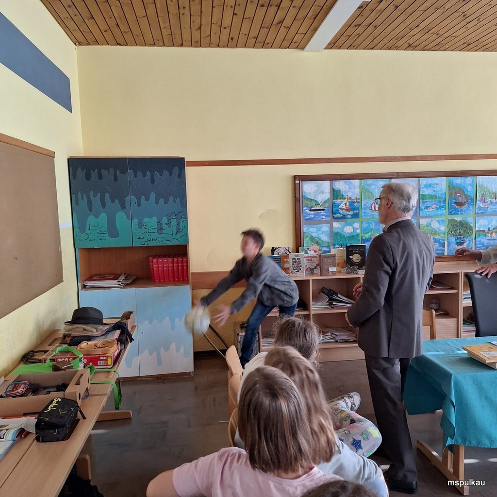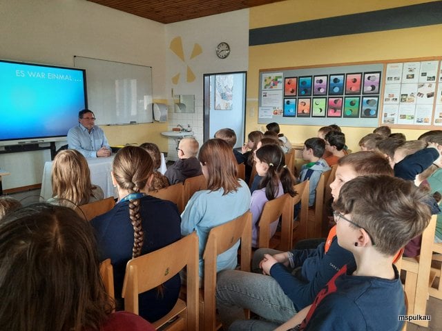 Auch dieses Jahr gab es eine Lesung mit Herrn Schneider, der aus seinen Reisetagebüchern vorlas und anschließend konnten die Kinder einen kleinen Frühstückssnack genießen. Herr Schneider berichtete interessante Details von seinen Reisen und zeigte dazu passende Fotos. Vielen Dank an Kollegen Schneider für die Bereitschaft, immer wieder gern Schulluft zu schnuppern.