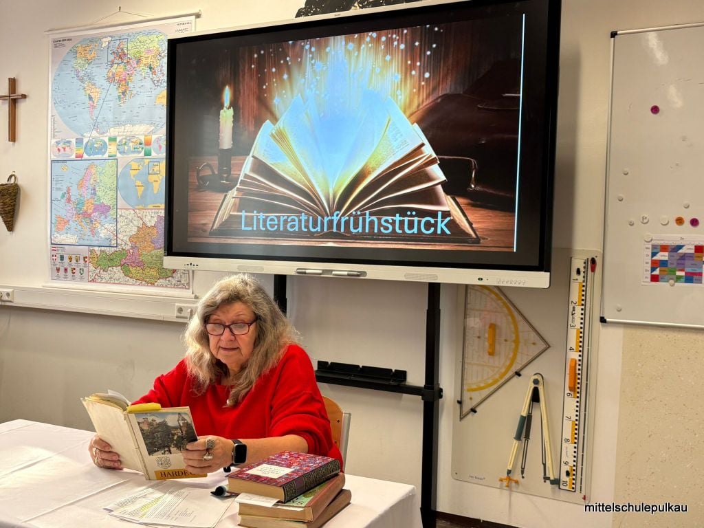 Ehemalige Schülerin als Lesegast beim Literaturfrühstück der 4. Klasse
