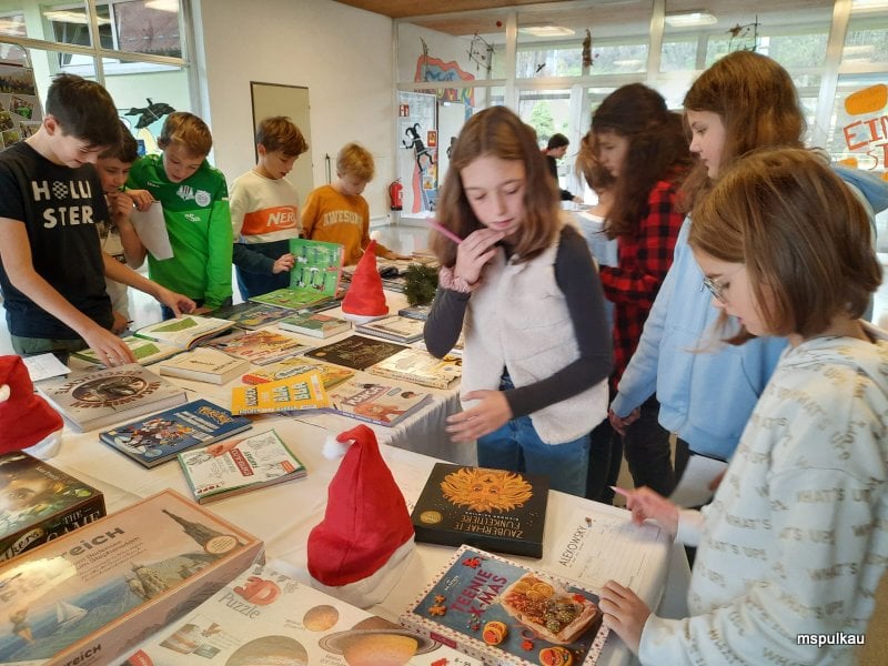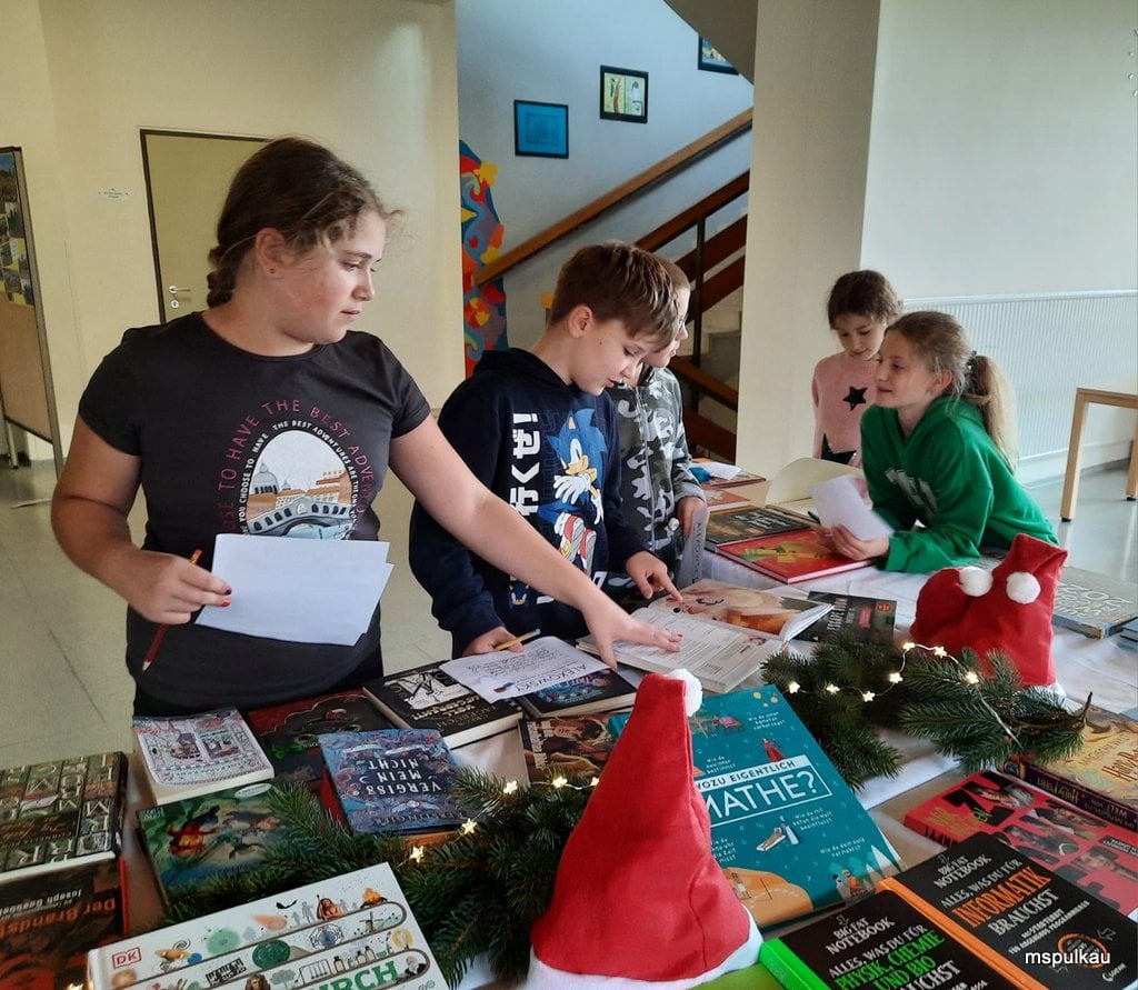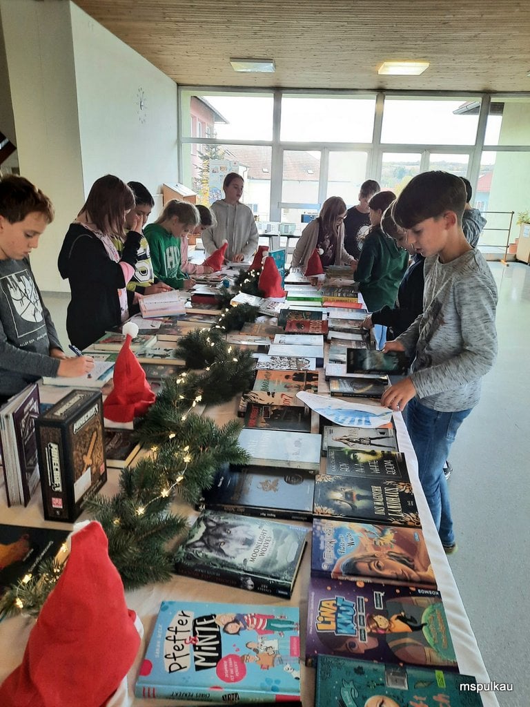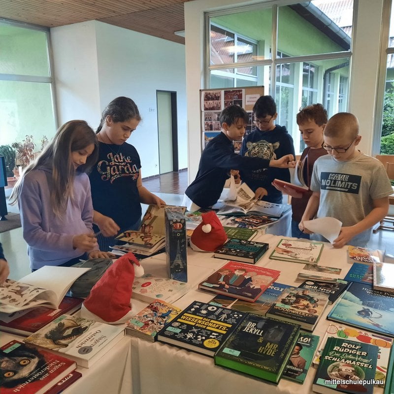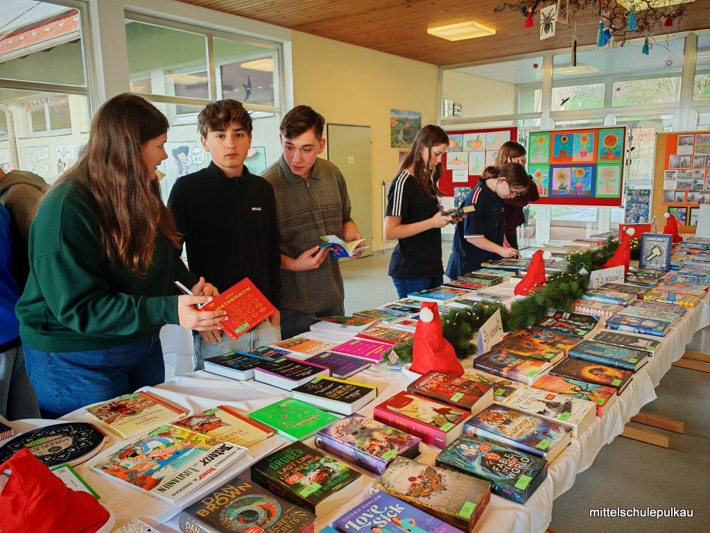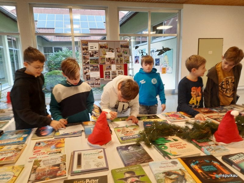 Wie jedes Jahr, fand auch heuer wieder die Buchausstellung (organisiert von Frau Zechmeister mit der Firma Alexowsky) statt. Die Kinder konnten drei Tage in den Büchern schmökern, sei es in der Pause oder auch mindestens einmal innerhalb einer Deutschstunde. Das Deutschteam hofft, dass unter einigen Christbäumen das ein oder andere Buch liegen wird. Während des Elternsprechtags hatten die Erziehungsberechtigten die Möglichkeit, die Bücher zu bestellen. Lesen ist wichtig und bildet weiter.