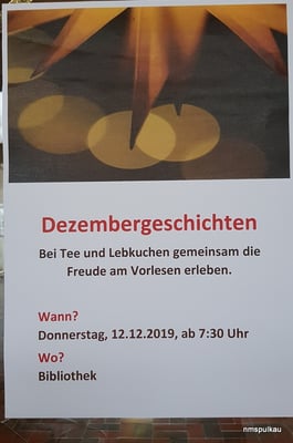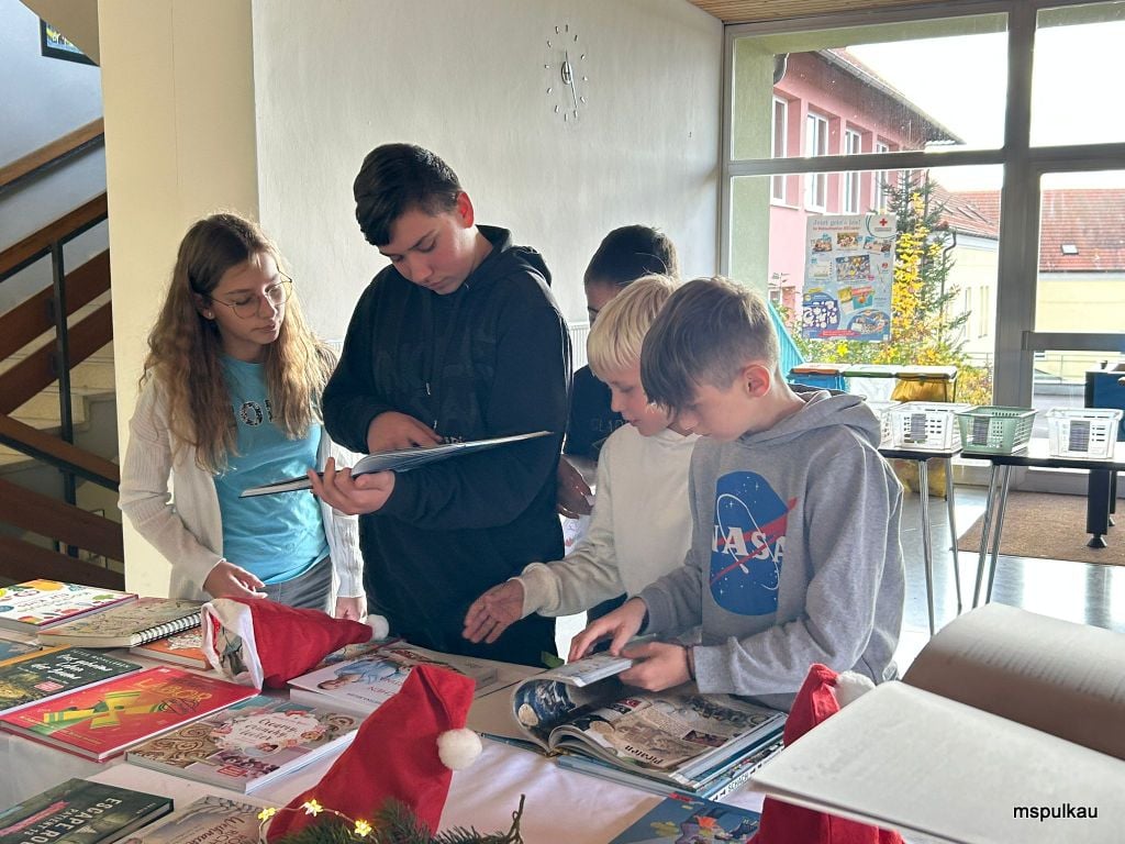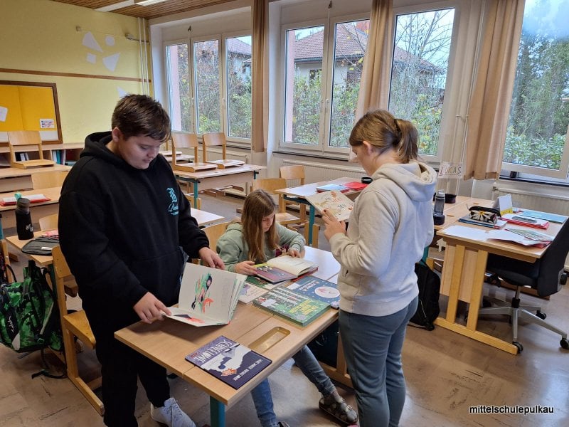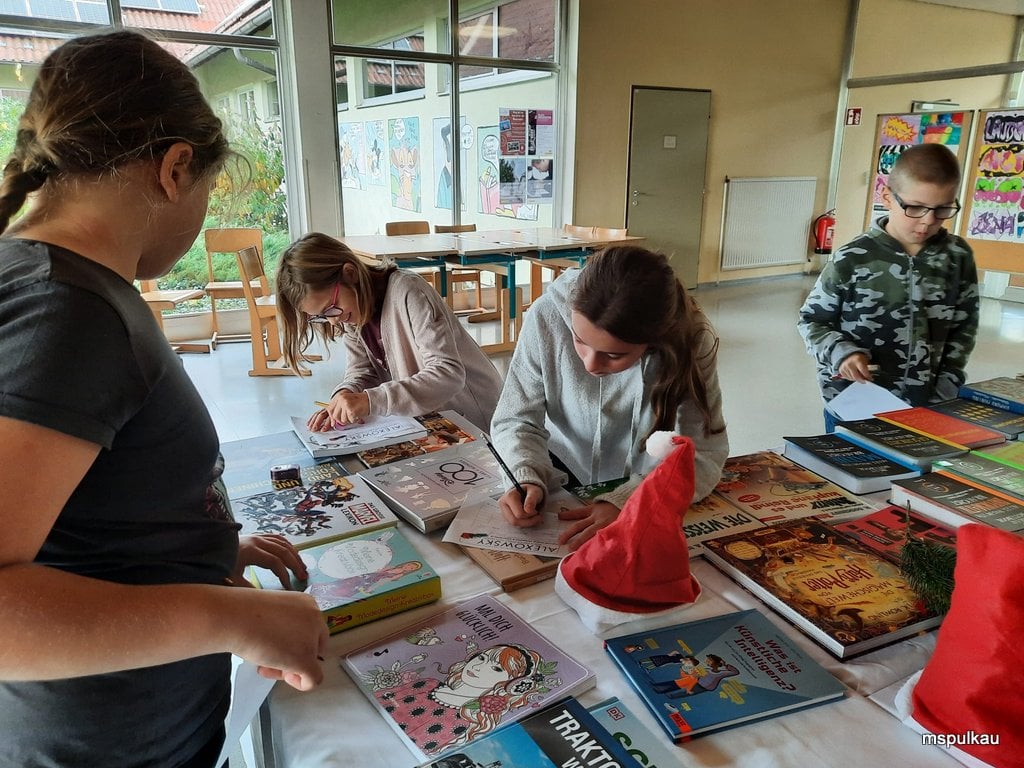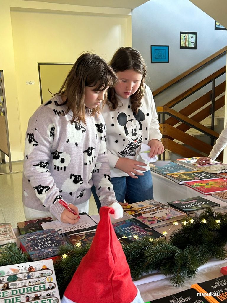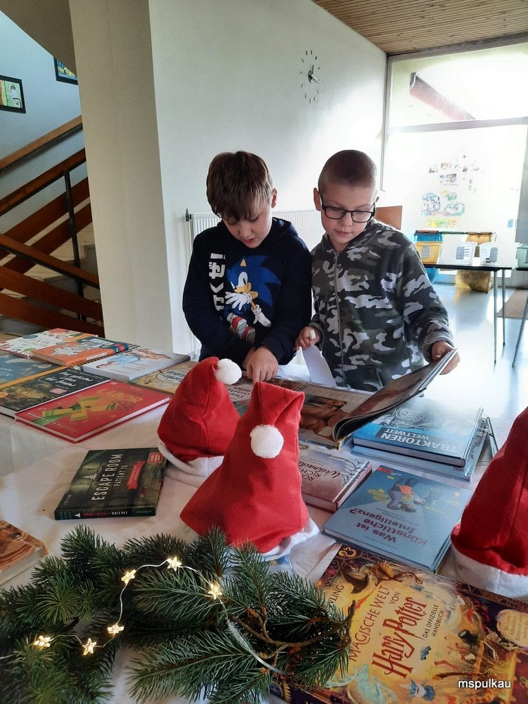 Wie jedes Jahr, fand auch heuer wieder die Buchausstellung (organisiert von Frau Zechmeister mit der Firma Alexowsky) statt. Die Kinder konnten drei Tage in den Büchern schmökern, sei es in der Pause oder auch mindestens einmal innerhalb einer Deutschstunde. Das Deutschteam hofft, dass unter einigen Christbäumen das ein oder andere Buch liegen wird. Während des Elternsprechtags hatten die Erziehungsberechtigten die Möglichkeit, die Bücher zu bestellen. Lesen ist wichtig und bildet weiter.