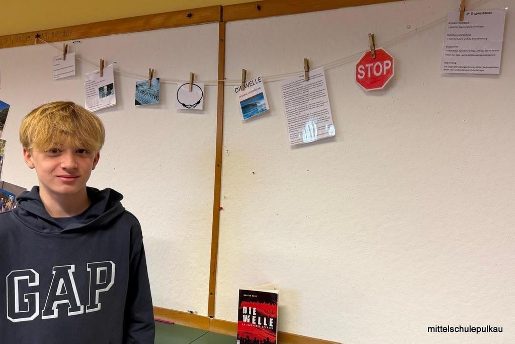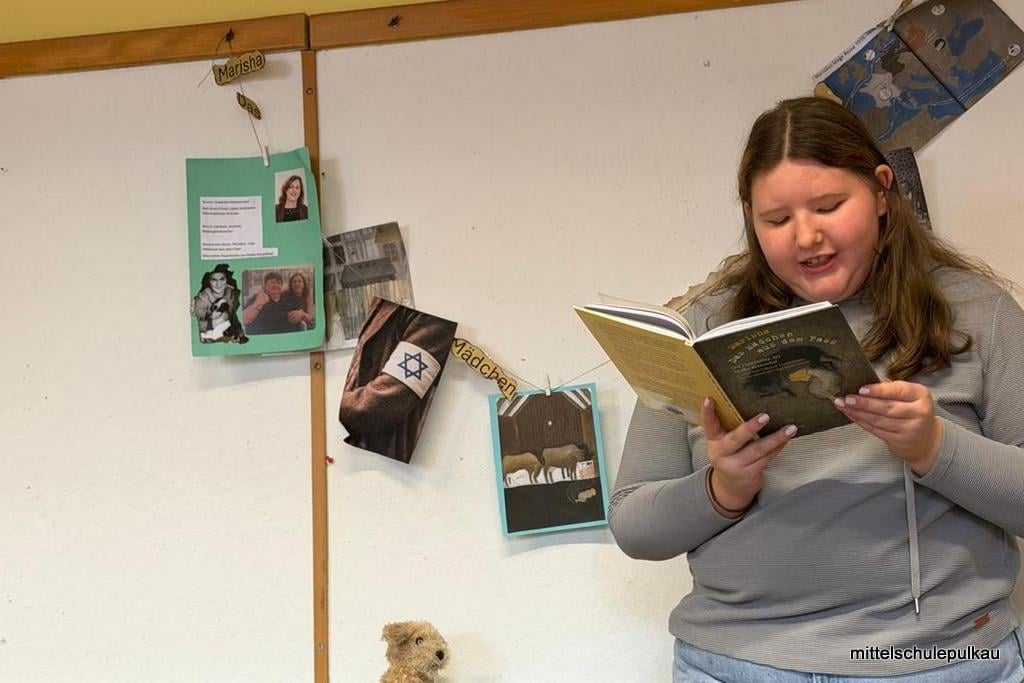 Die Kinder arbeiten ein Referat mit einer Leseschnur als Anschauungsmaterial aus. Jeder Schüler und jede Schülerin hat ein unterschiedliches Buch rund um den 2. Weltkrieg und dem Holocaust gelesen und das Referat gehalten.