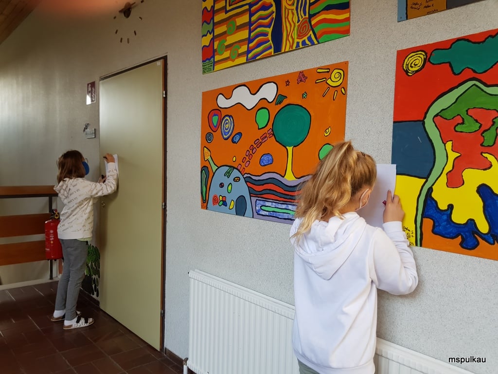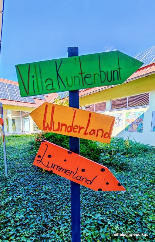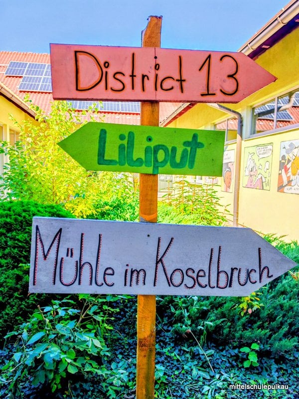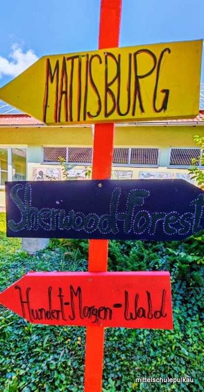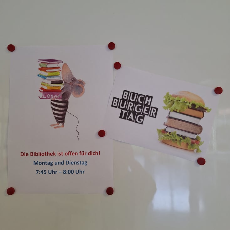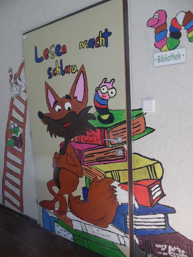 Kollegin Schneider hat im Werkunterricht mit der 4. Klasse die "Literaturschilder" gebaut und bemalen lassen. Nun weisen diese Schilder den Weg zur Bibliothek. DANKE.