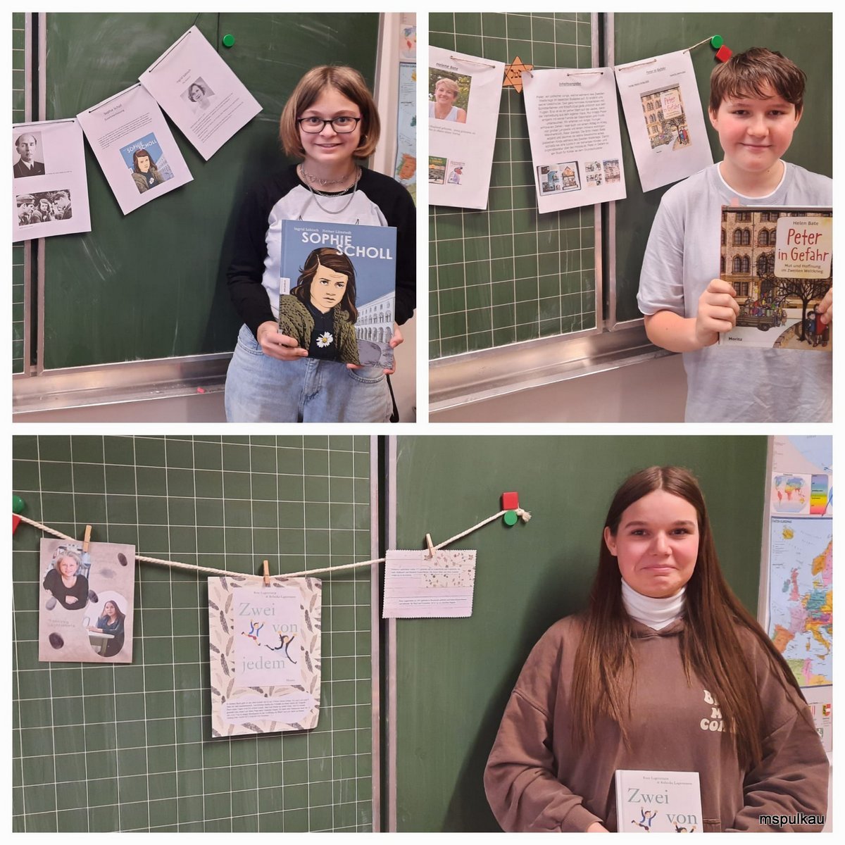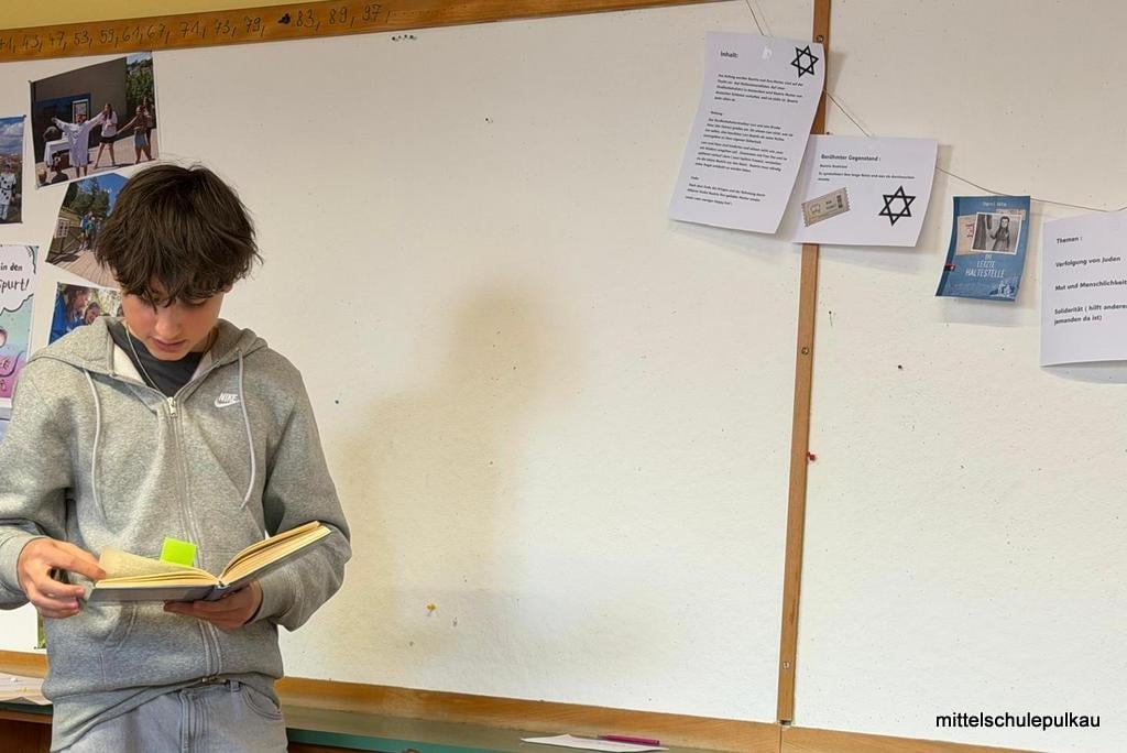 Die Kinder der 4. Klasse lasen im Deutschunterricht unterschiedliche Bücher zum Thema 2. Weltkrieg und Holocaust. Jedes Buch wurde mit einer Leseschnur präsentiert.