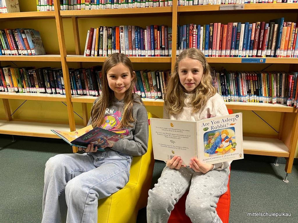 Die Kinder der 1. Klasse besuchten die Schulbibliothek. Dort durften sie in der bunten Auswahl an englischsprachigen Büchern stöbern und sich ihr persönliches Lieblingsbuch aussuchen. Mit Neugier und Freude schmökerten sie in den Geschichten, betrachteten die Bilder und entdeckten dabei ganz spielerisch neue englische Wörter. So macht das Lesen gleich doppelt Spaß!