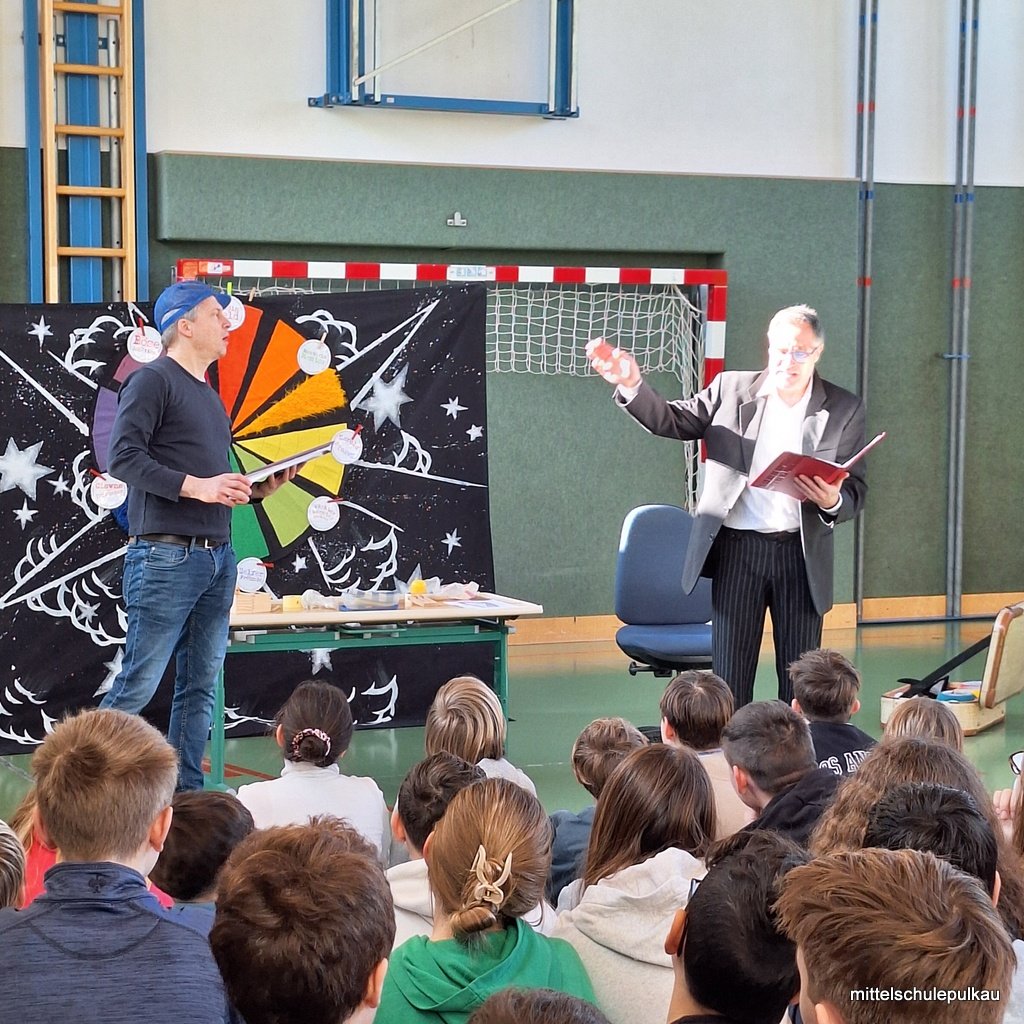 Hannes Hörndler zu Gast an unserer Schule. Mit einem abwechslungsreichen Programm präsentierte sich der Kinder- und Jugendbuchautor in allen Klassen als witziger und mitreißender Entertainer. Er erzählte frei aus seinen Büchern, die Schüler und Schülerinnen durften Szenen weiterspinnen und kleine Rollen übernehmen. Einblicke in das Leben und die Arbeit eines Autors rundeten die Lesung ab. Ein mehr als gelungener Versuch, beim jungen Publikum die Lust aufs Lesen zu wecken. Herzlichen Dank auch an den Elternverein, der die Kosten für die Lesung übernahm.