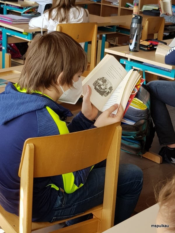 Auch im Englischunterricht ist es den Lehrkräften ein Anliegen, dass englische Lektüre gelesen wird. Die 3. Klasse liest "Gangsta Granny" und die 4. Klasse das Buch "Face on the Milk Carton". So wird der Wortschatz erweitert.