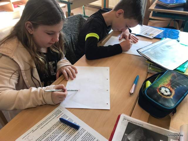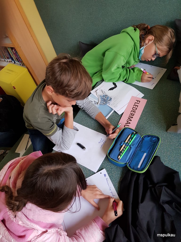 Für die Literaturmappe wird das Gedicht in Schönschrift geschrieben und passende Bilder dazu illustriert. Als Abschluss gibt es eine Inszenierung des Gedichtes und es entsteht ein kurzer Film. Die Schnäbel wurden im Werkunterricht hergestellt. Unser Motto: Literatur erfahrbar machen.
