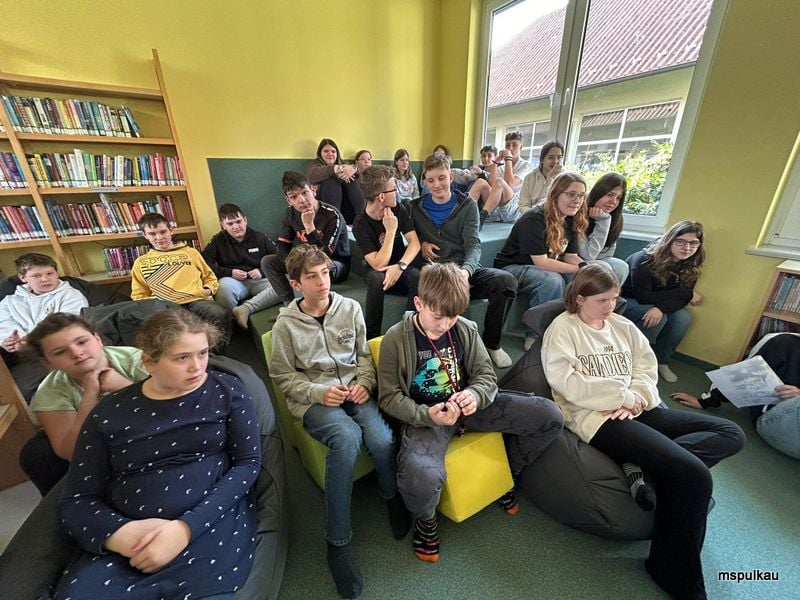 Jugendbüchern. Mit einer Leserallye ging es los, dann durfte in den Büchern geschmökert werden. Zum Schluss fand ein reger Austausch über das Gelesene statt. So macht Literaturunterricht