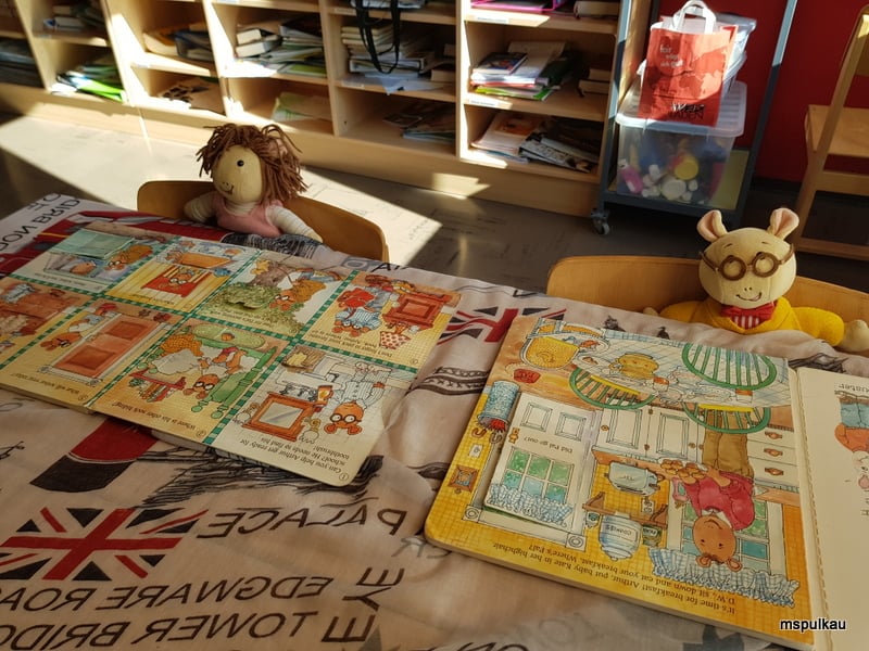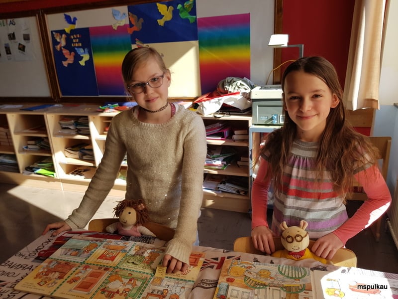 Im Klassenzimmer der 1. Klasse wurde nun ein Lesekoffer mit englischen Büchern - geeignet für den Englischunterricht der 1. Klasse zur Verfügung gestellt. Passend zu den Büchern gibt es dazu Arthur und DW als Puppen. Diese werden von den Kids ebenfalls betreut.