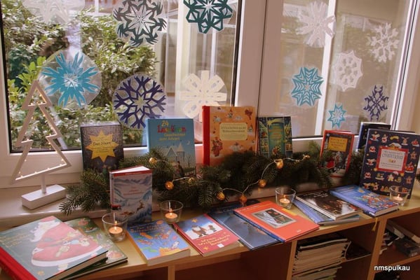 Christbaum liegen. Danke an unsere Bibliothekarin Frau Zechmeister, die diese Ausstellung immer organisiert.
