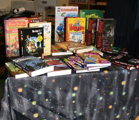 viele Bücher zur Ansicht in der Aula und in den Deutschstunden haben die Kinder ausreichend Zeit gehabt darin zu schmökern und zu bestellen. Es wird sicher das eine oder andere Buch unter dem