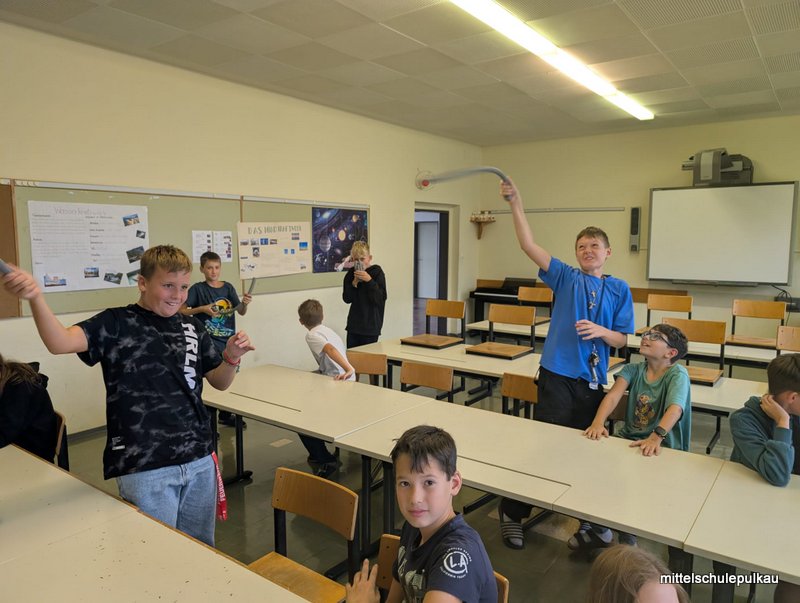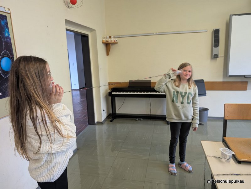 Mit gespannter Schnur, zwei Bechern und viel Spaß testeten wir, wie Schallwellen durch Vibrationen übertragen werden – und staunten, wie gut unsere „Telefonleitungen“ tatsächlich funktionierten.