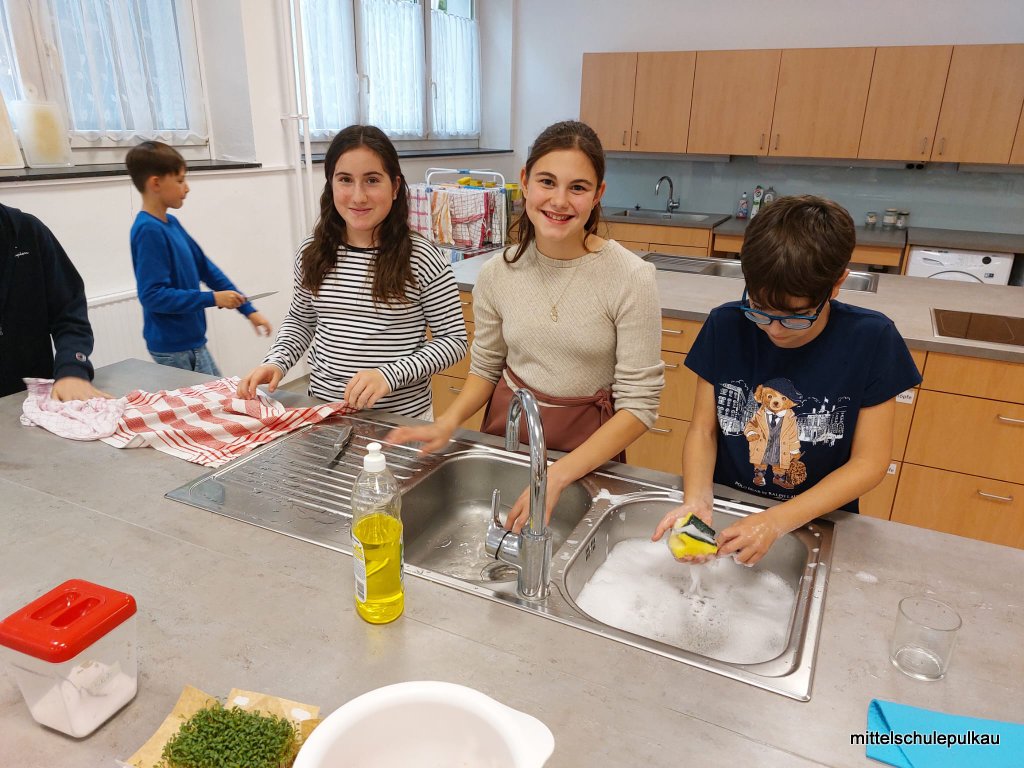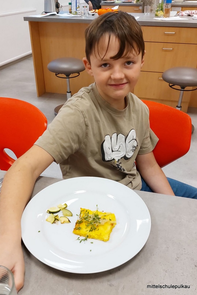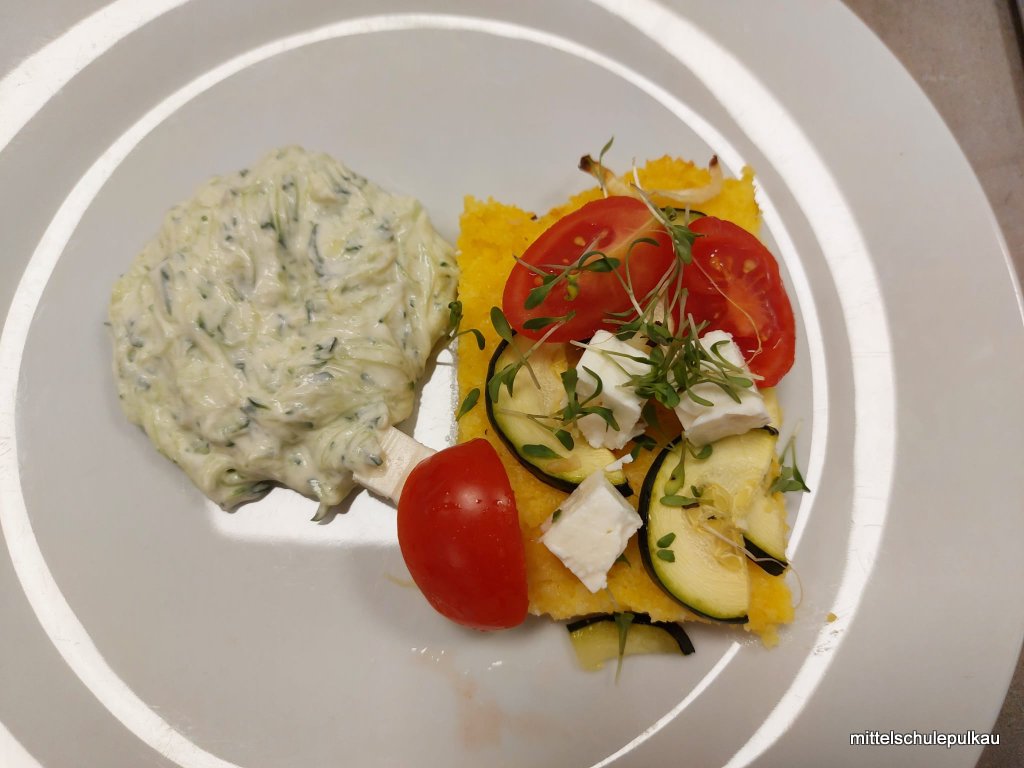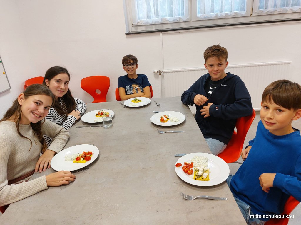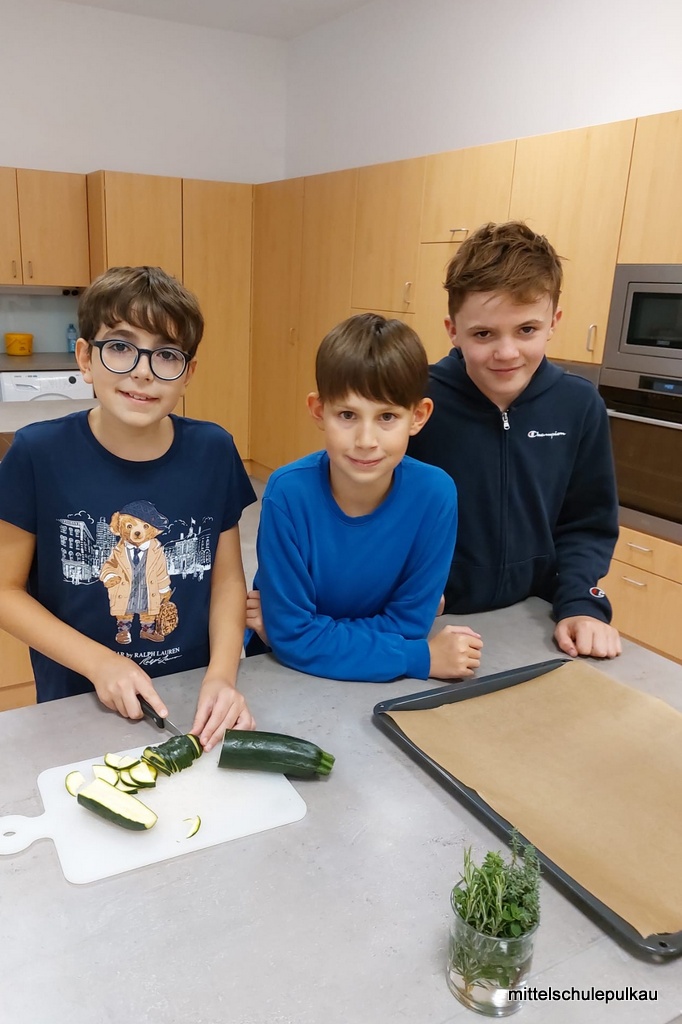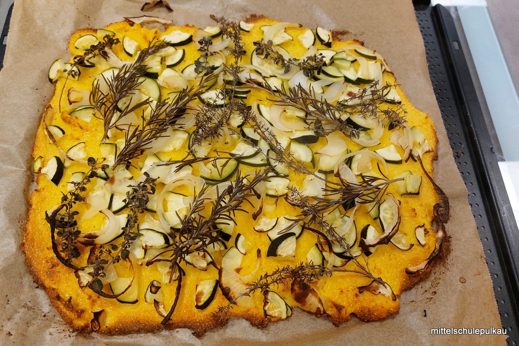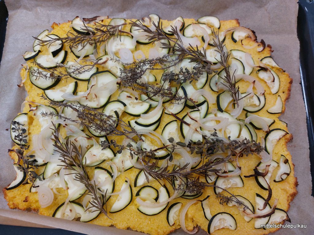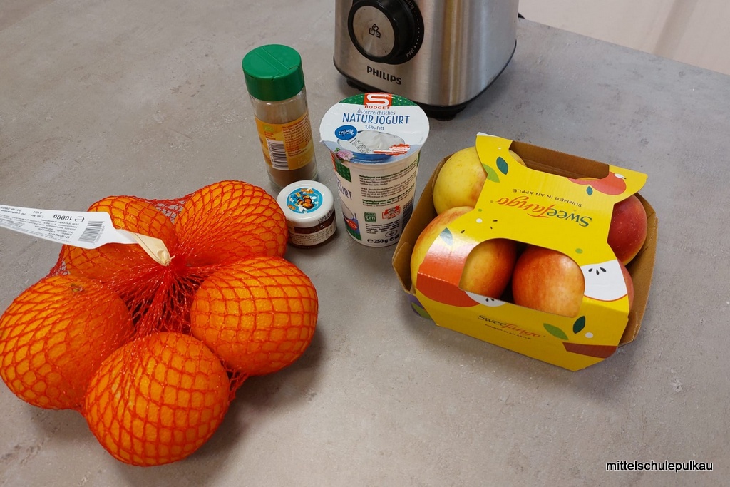 Diesmal gab es nach einem gesunden Popcorn (ist ungesalzen und ohne Fett reich an Ballaststoffen und Antioxidantien) als Hauptspeise eine vegetarische Polentapizza mit Kräutern und Tsatsiki. Als Nachspeise haben wir einen Herbst-Smoothie mit Äpfeln, Zimt und Honig zubereitet. Allen Schülern hat es geschmeckt, obwohl "gar kein Fleisch dabei war".