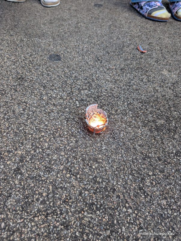 Im MINT Workshop mit Herrn Kraus gin es um das Thema Thermit: Die Kinder haben eine Mischung aus Metallen hergestellt, die mit 3000 Grad Celsius brennt. Thermit wird auch zum Eisenbahngleisschweißen verwendet! Faszinierend, diesen Vorgang zu beobachten.