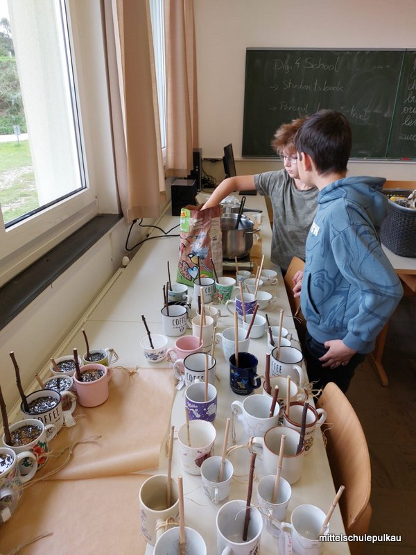 Schüler der 1. und 2. Klasse haben eifrig zahlreiche Futtertassen für Vögel im Winter hergestellt. Diese können dann in einen Baum oder auf den Balkon gehängt werden und helfen so unseren gefiederten Freunden durch den Winter. Die Futtertassen sind somit nützlich und dekorativ. Zu bewundern und zu kaufen gibt es sie wieder bei unserem Stand am Christkindlmarkt.