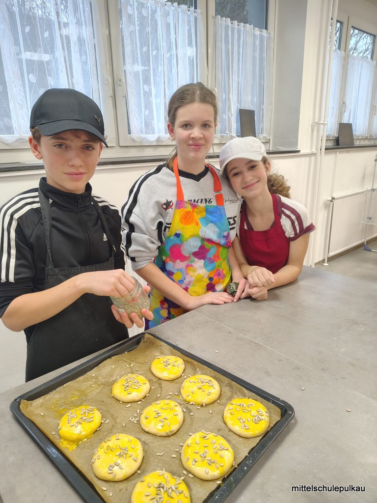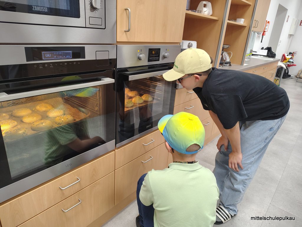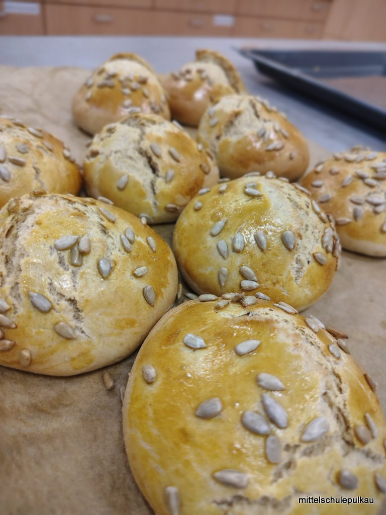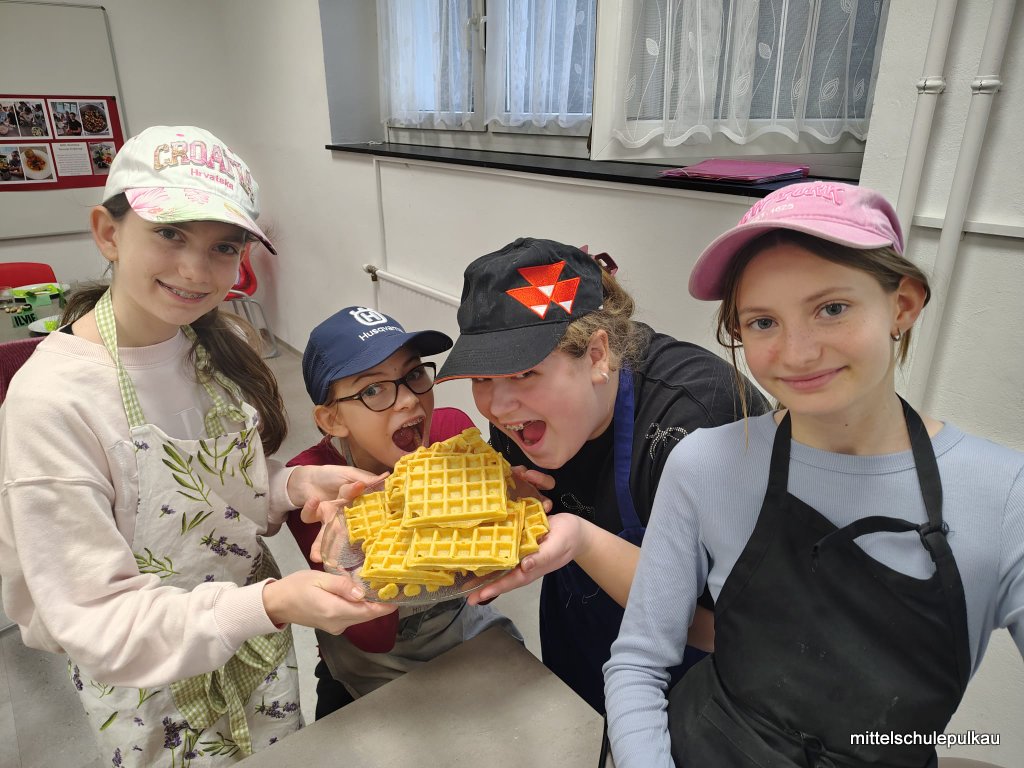 In den beiden zweiten Klassen zeigte Frau Scharinger den Schüelrinnen und Schülern wie man köstliches Brot und Gebäck recht schnell backen kann. Es duftete durch das ganze Schulhaus. Auch gesunde Palatschinken wurden gebacken.