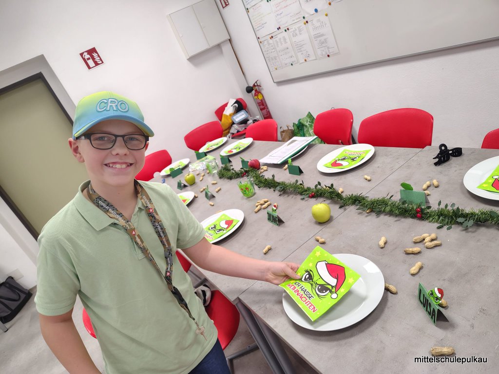 Die Kinder der 3. Klasse kochten zwei Arten vonGulasch: eines mit Würstchen und ein vegetarisches Gericht. Die Deko lässt schon erahnen, dass Weihnachten in großen Schritten herannaht.
