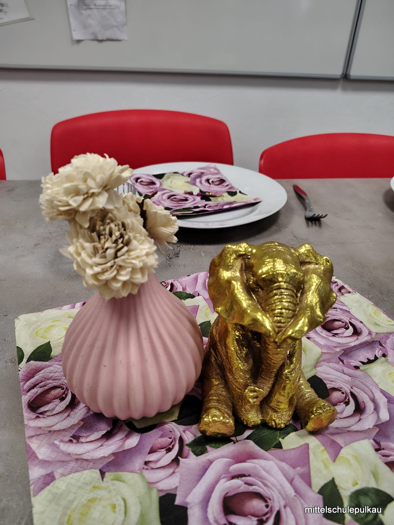Die 2b hielt bereits ihre letzte EH Stunde für dieses Schuljahr. Auf Wunsch wurde Pasta Asciutta gekocht und als Nachspeise gab es Kirschkuchen. Die gut gelungene sommerliche Deko steigert die Vorfreue auf die nahenden Ferien.