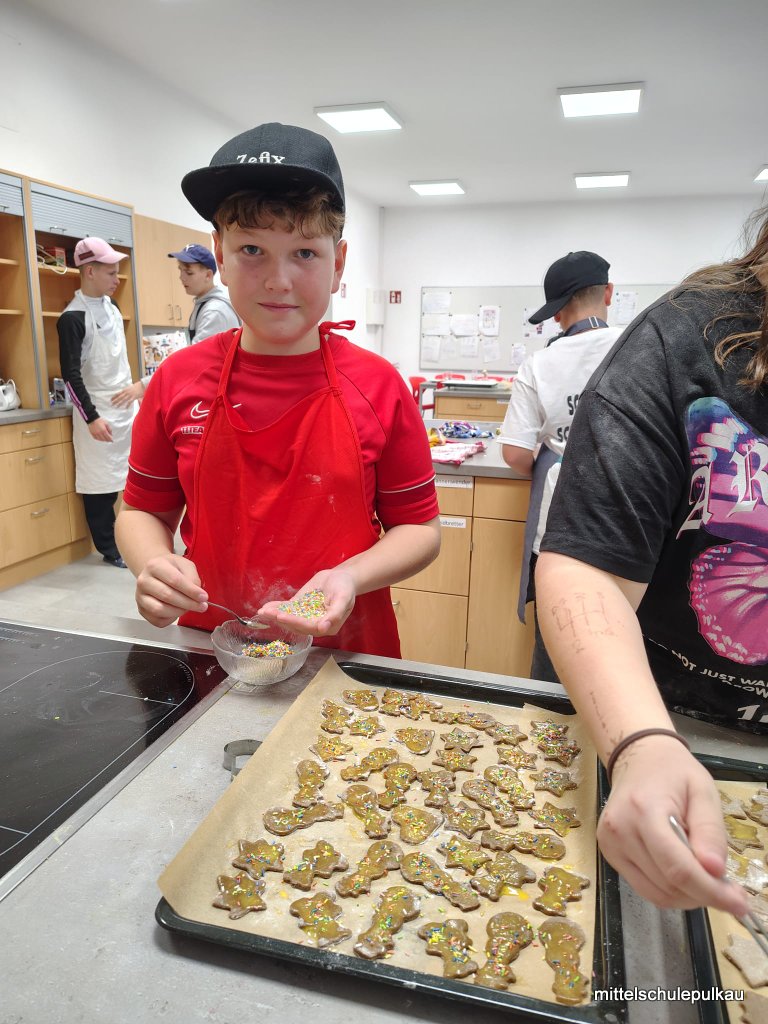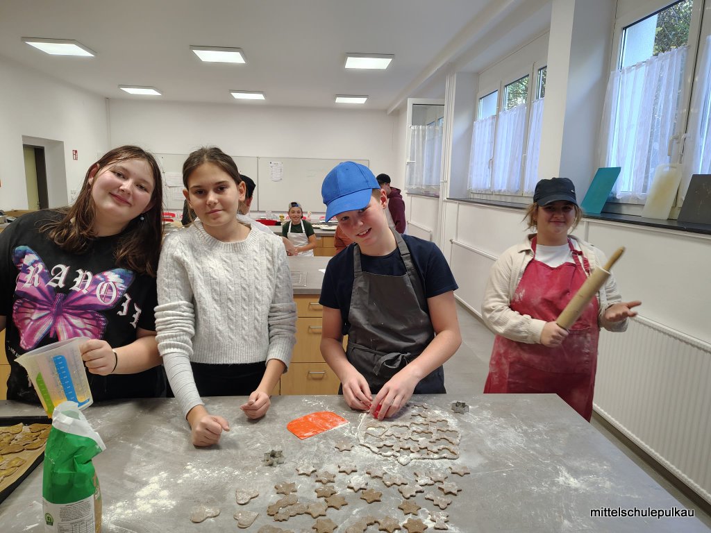 Nach einer zweijährigen Pause konnte wir wieder Weihnachtskrapferl mit unserer Partnerschule HLT Retz backen. Frau Widhalm kam mit ehemaligen Schülerinnen unserer Schule (und den ganzen fertigen Teigen und anderem Zubehör) und zeigte der 2. Klasse, undeine Woche später der 3. Klasse, wie Kekse besonders gut gelingen. Alle SchülerInnen arbeiteten konzentriert und es konnte jedes Kind eine Schachtel Krapferl mitnehmen. Danke vielmals für die sehr gute Zusammenarbeit.