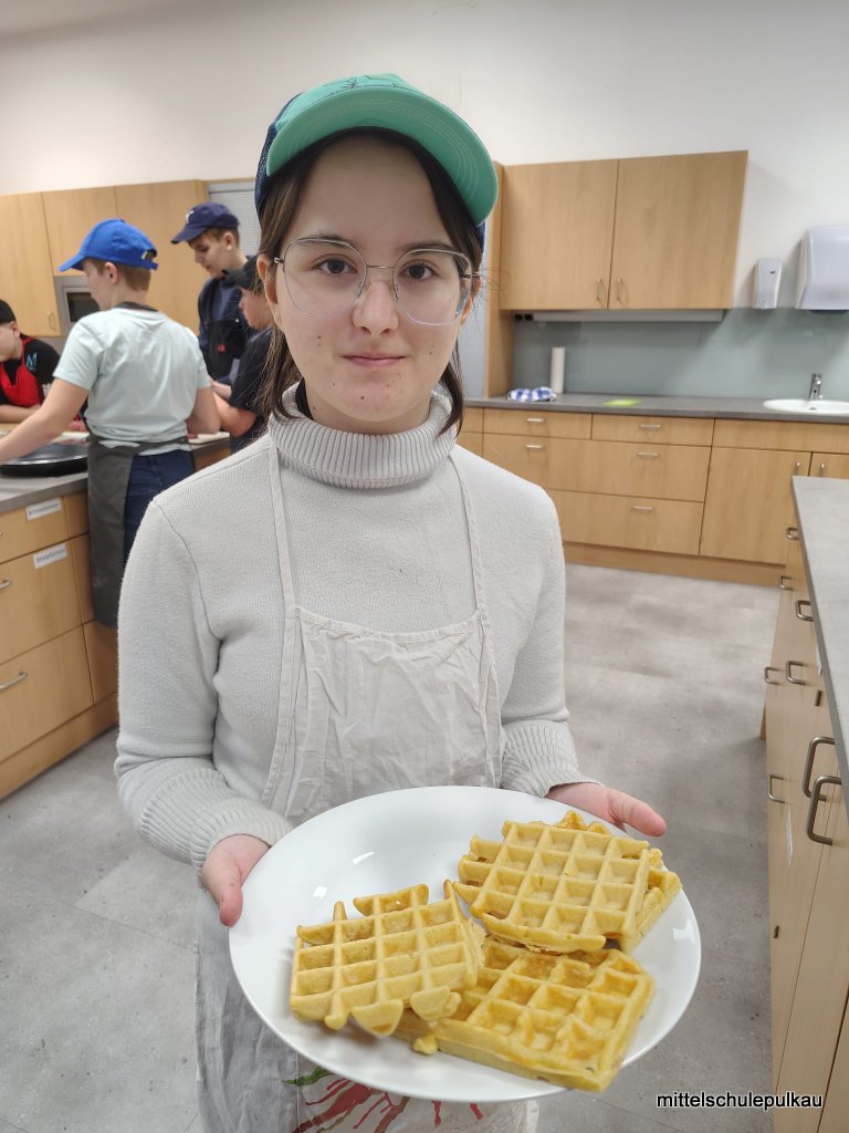 Die Kinder bereiteten im Rahmen des Kochunterrichts Burger und Waffeln zu. Frau Scharinger zeigte den Kindern, wie gute Burgerbuns und Bürger gelingen und informierte über das Thema "Regionale Produkte". Die Kinder stellten sich zuletzt die Burger selber zusammen und als Nachspeise gab es leckere Waffeln. Mahlzeit.