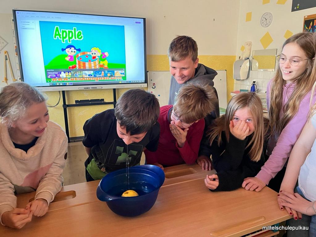 Die erste Klasse konnte mit Frau Arthold im Rahmen der unverbindlichen Übung "English with Games" verschiedene Halloween Games durchführen und probierte unter anderem "Bobbing the Apple". Es wurden Lieder gesungen und Word games analog gespielt, wo der aktuelle Lernstoff spielerisch gefestigt wurde.
