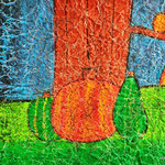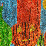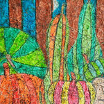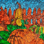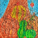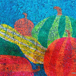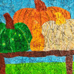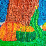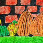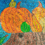 Kürbisse in Papierbatik, Wachsmalkreide, Wasserfarben, 3a