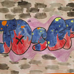 Graffiti, Filzstifte, Wasserfarben, Buntstifte, 4a und 4b