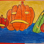 Kürbisgruppe, Wachsmalkreiden, 3b