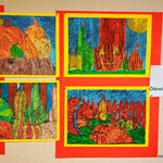 Leuchtende Kürbisse, Papierbatik mit Wachsmalkreiden, 3a und 3b